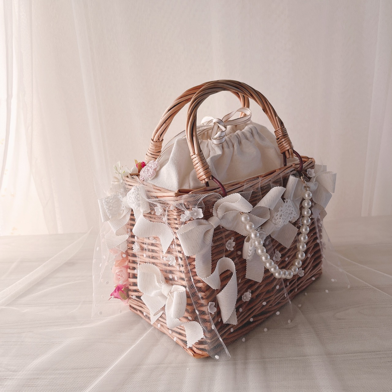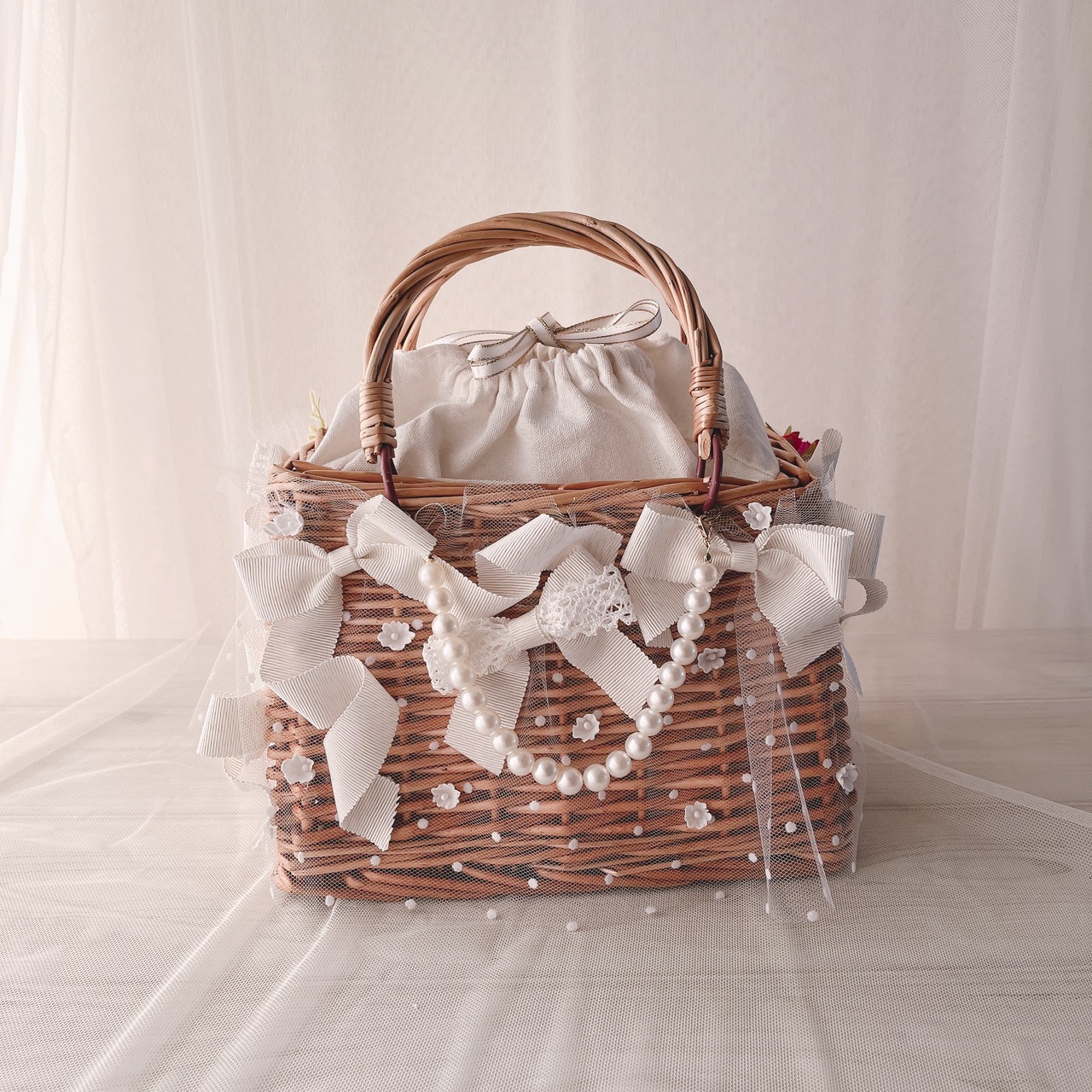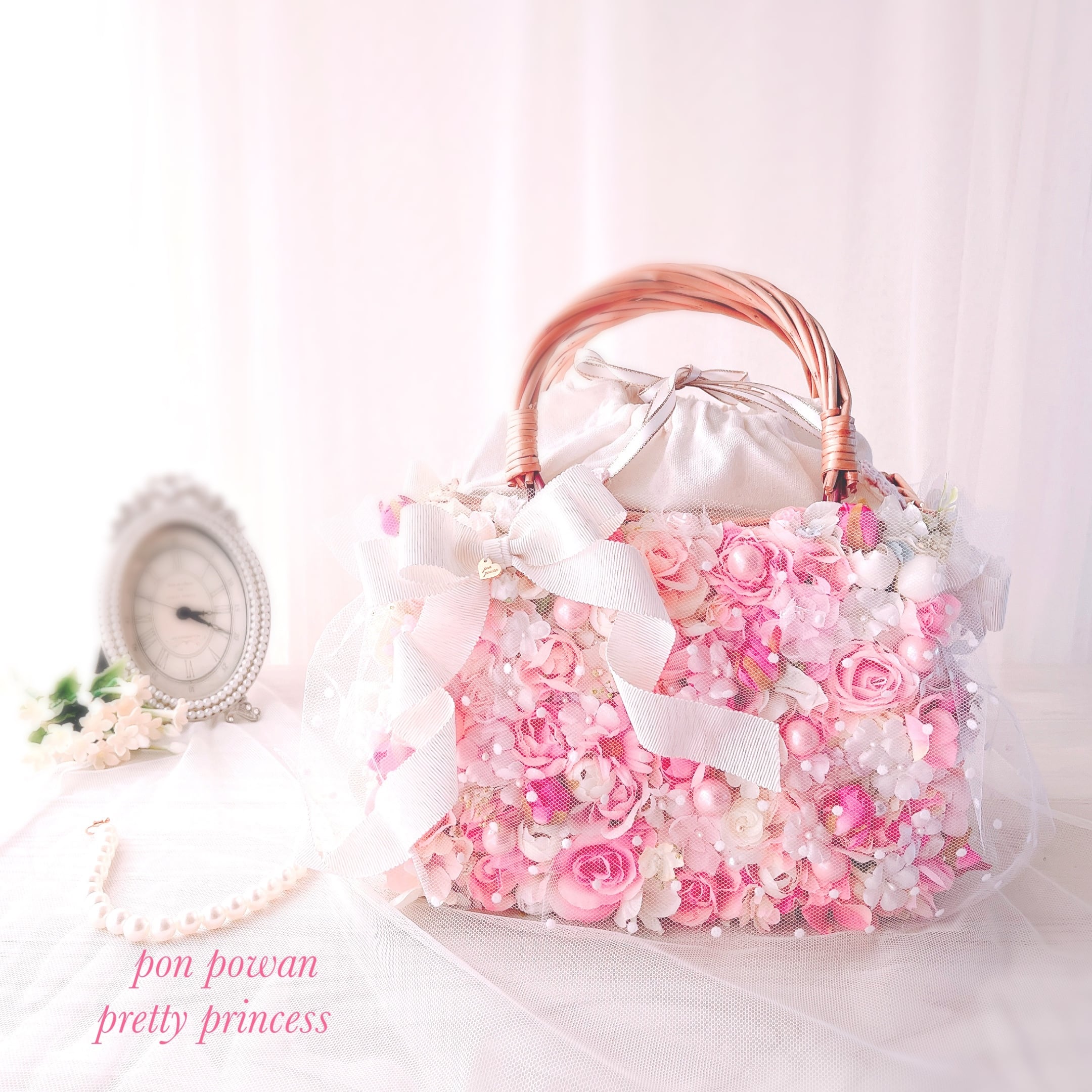 ✳︎お花とリボンのほほえみバスケット✳︎お花可愛いフラワーバスケット✳︎お花畑のようなバスケット(パールチャーム1つプレゼント♡)両面楽しめるバッグ ♡大人可愛いバスケット♡毎日持ちたい♡カゴ♡おしゃれカゴ♡お部屋のインテリア♡エレガントバスケット♡アーティフィシャルフラワーバスケット♡お花たっぷり♡ロマンティック♡私だけの一点物♡