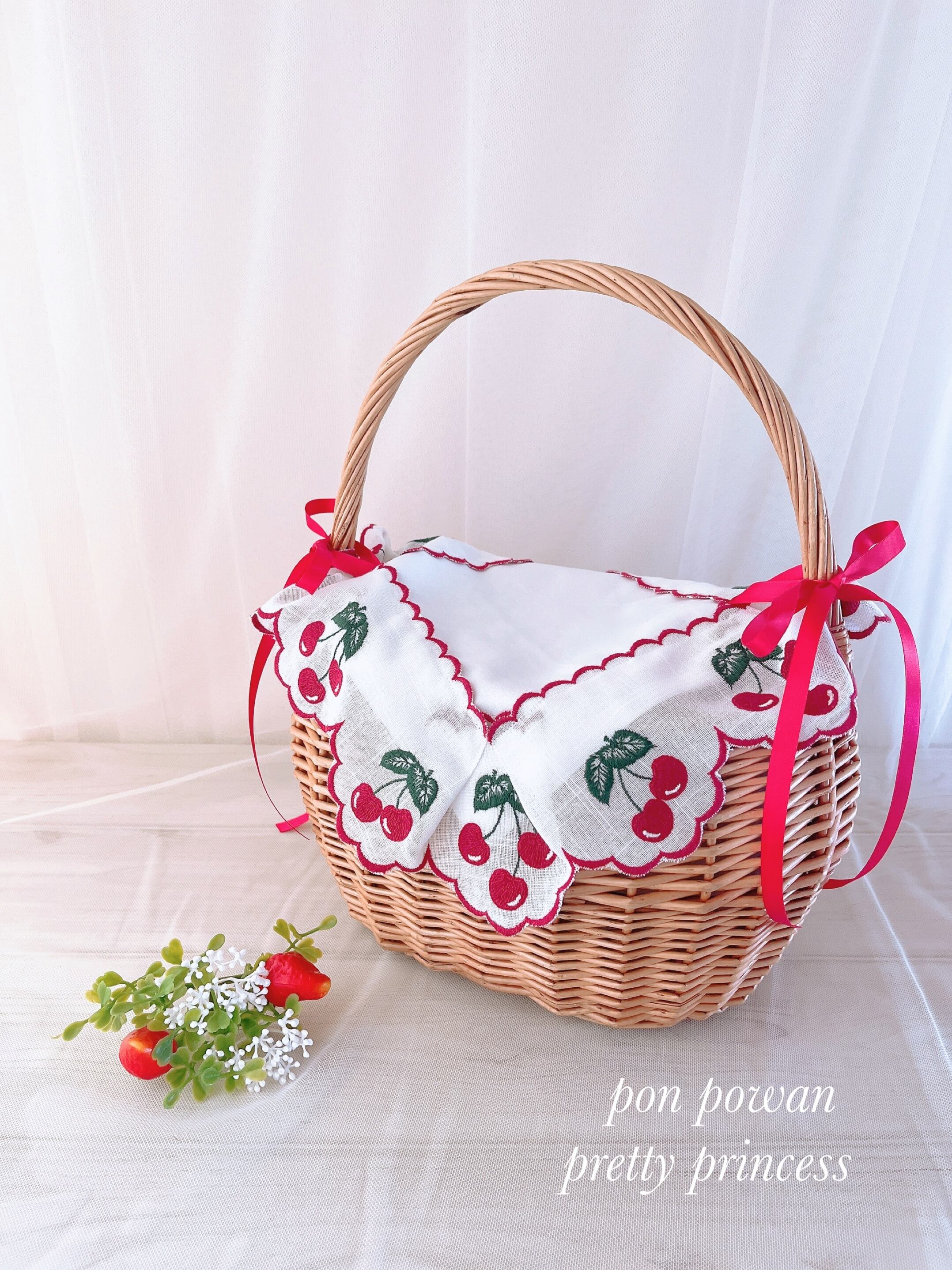 カゴバッグのハンドルにリボンを結ぶだけで、