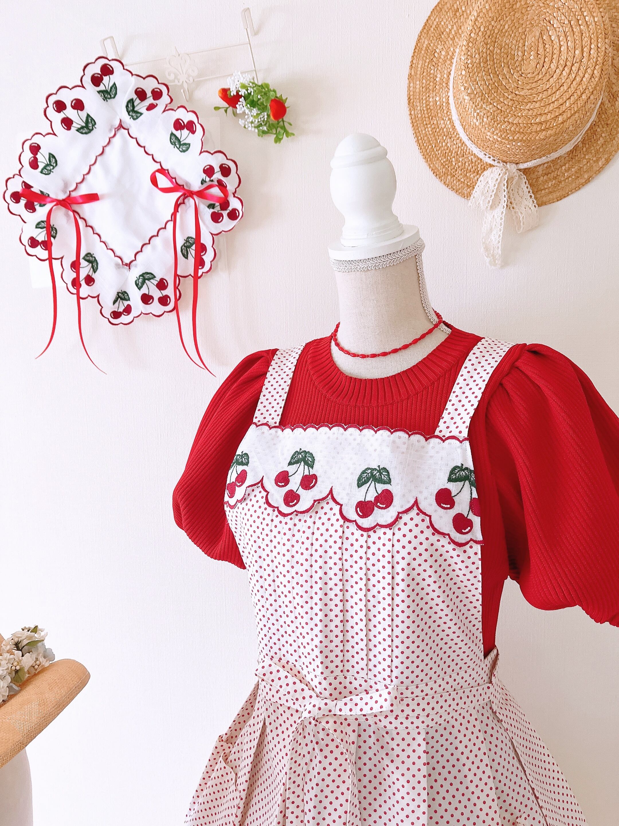 ドット生地とチェリーのレースは相性抜群