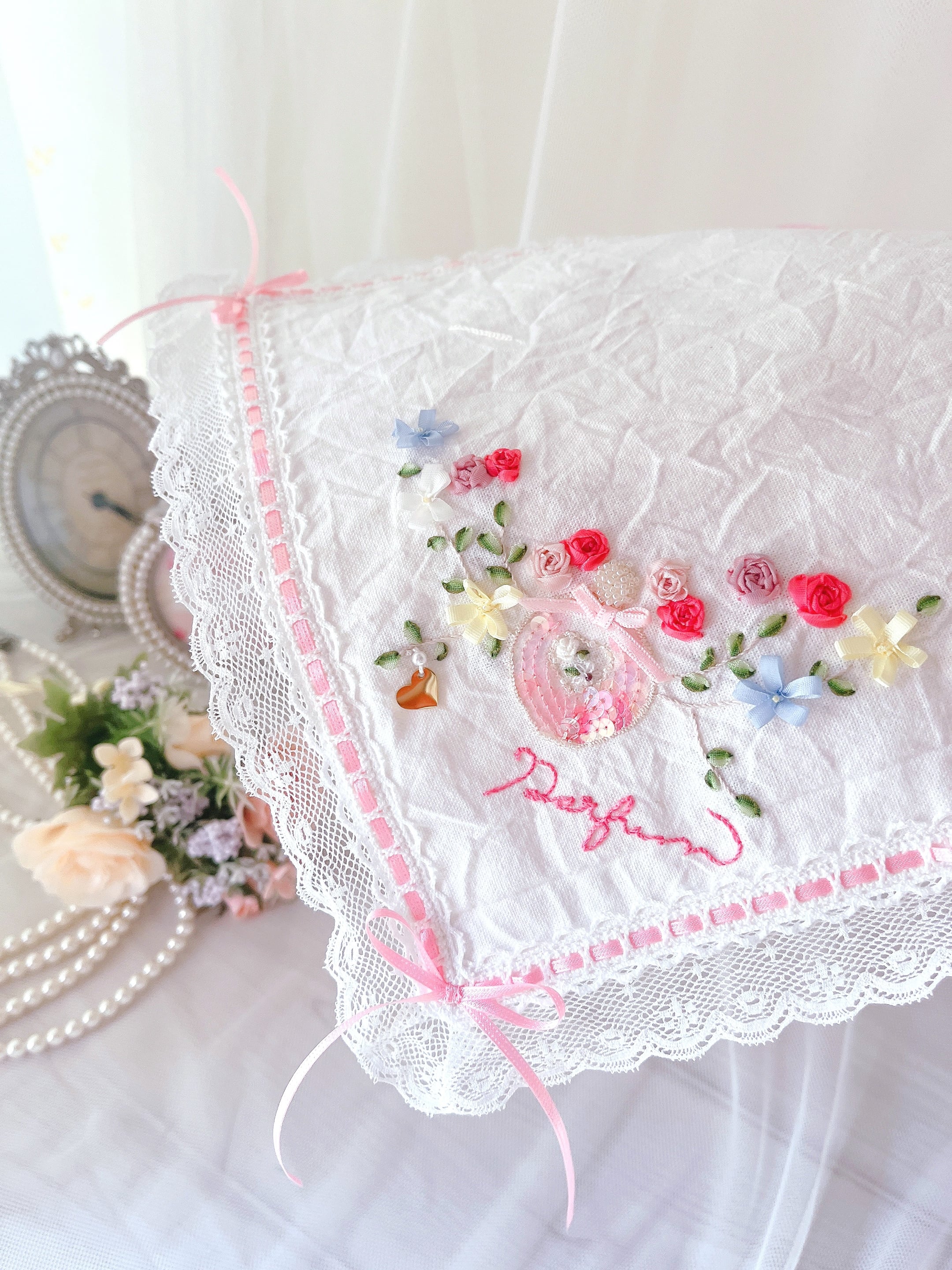 ♡perfume刺繍のおめかしカバー♡単品♡white♡大人のかわいいを楽しむ♡香水瓶*リボン刺繍*スパンコール&ビーズ刺繍♡ときめきのおめかしカバー♡私のお気に入り♡心ときめく一点物 .。.:・゜゚・ | pon powan