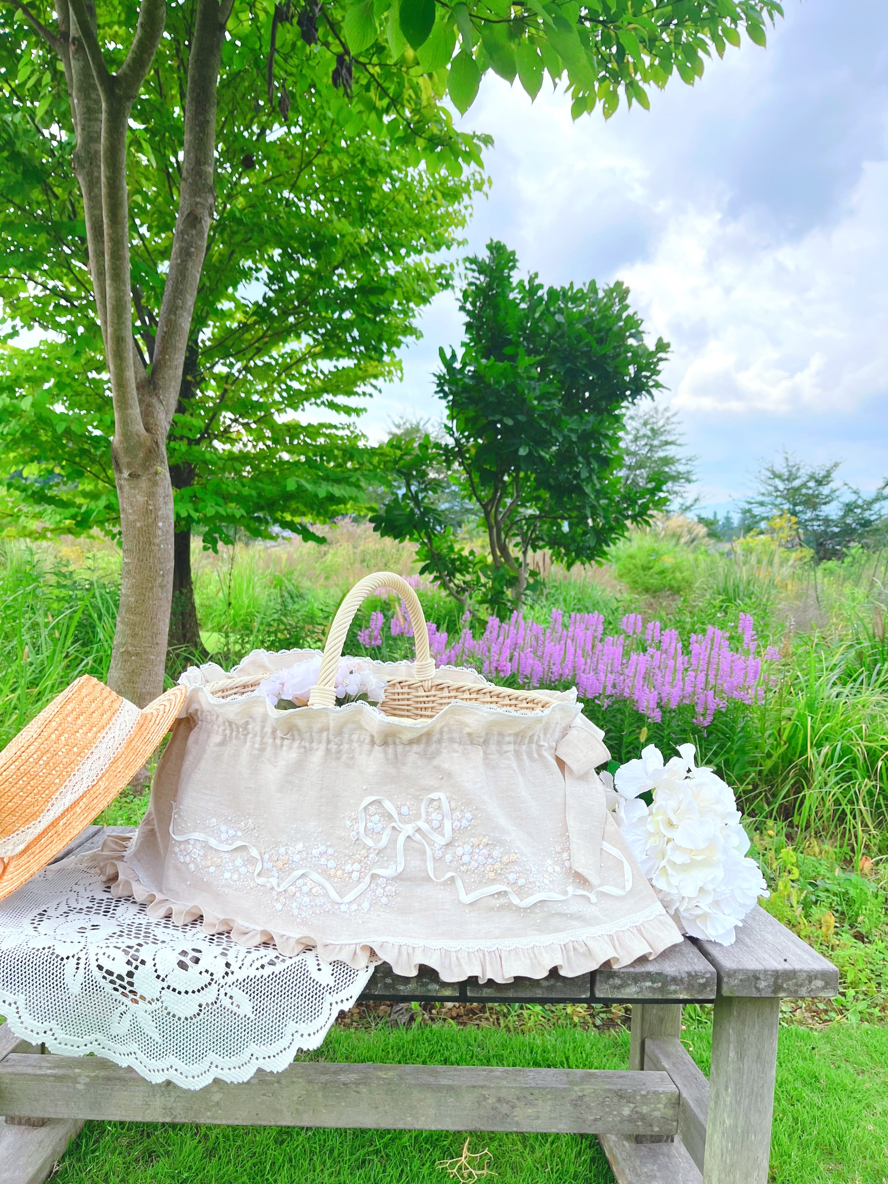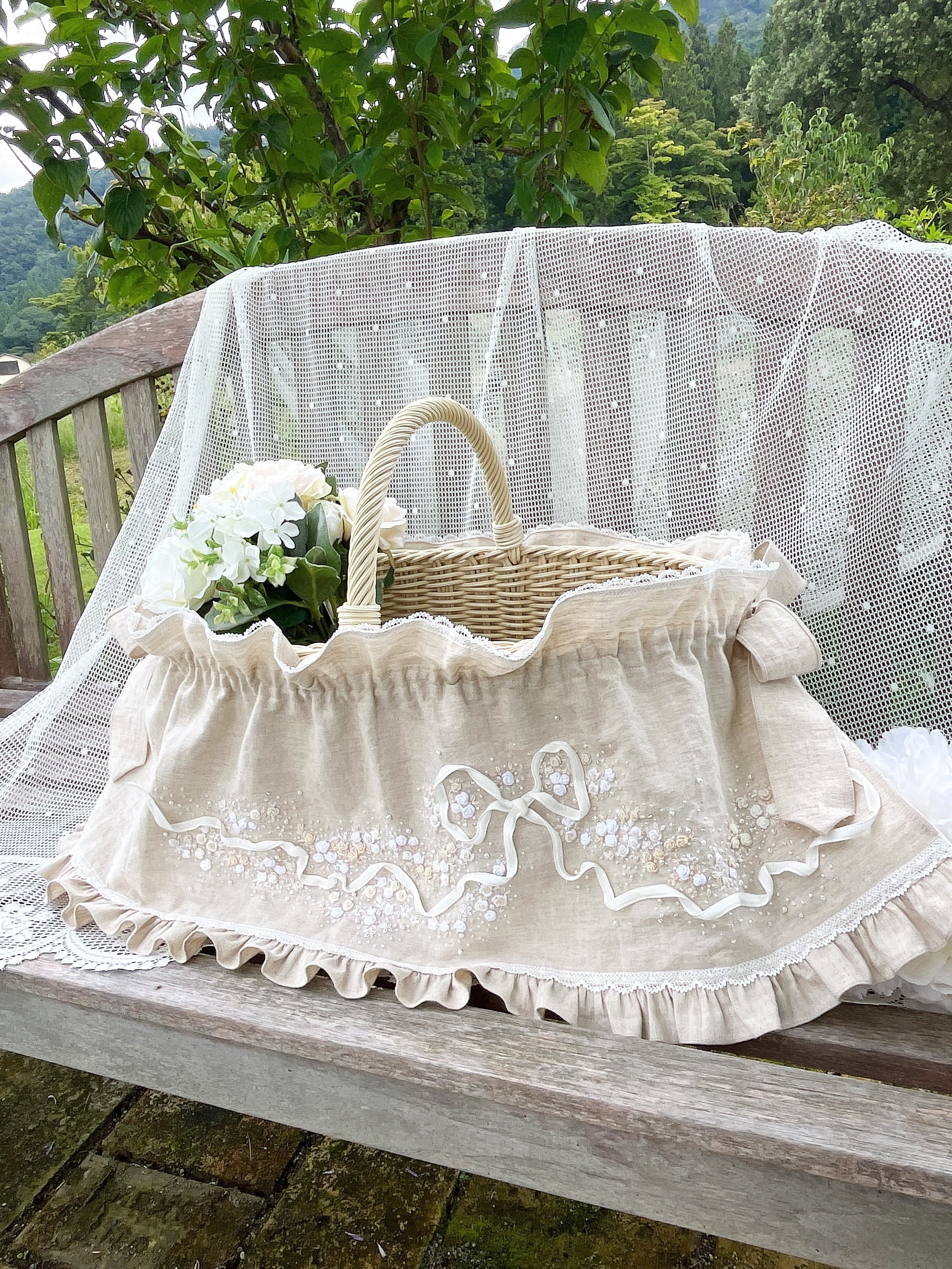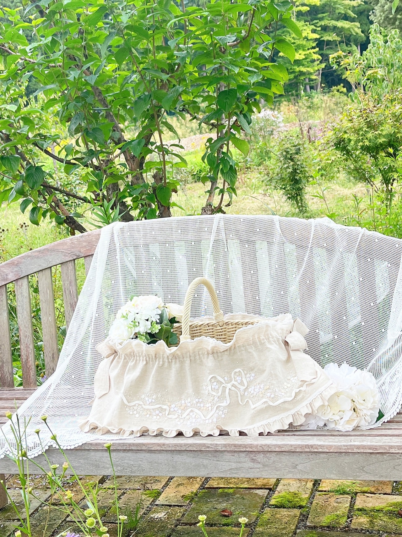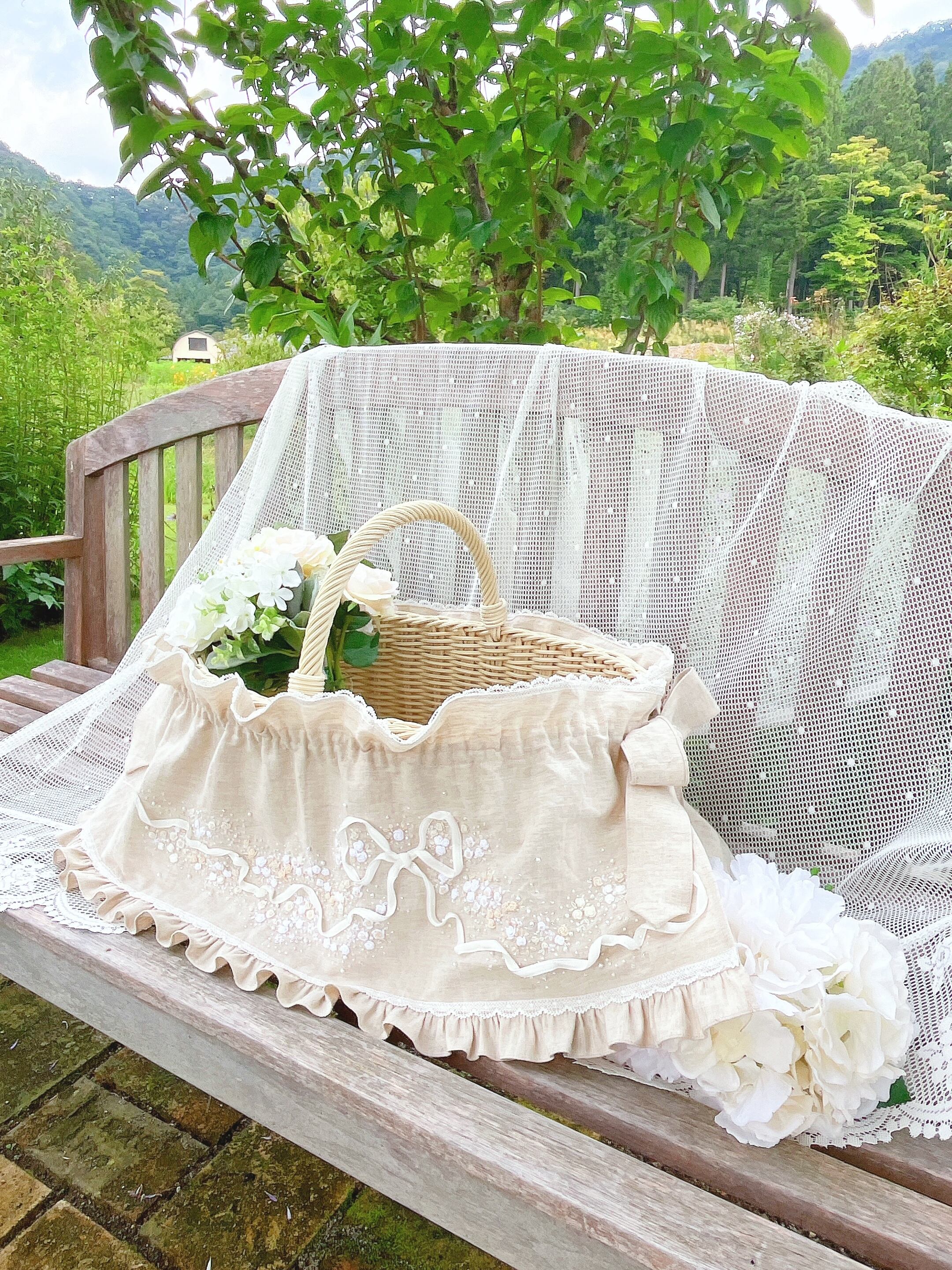 ♡フェアリーフリルバスケットカバー♡ Cream Chantilly White ♡手刺繍のおめかしカバー♡美人White単品♡ホワイトカラー♡大人のかわいいを楽しむ♡ときめきおめかしカバー♡私のお気に入り♡心ときめく一点物 .。.:・゜゚・♡