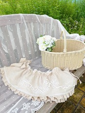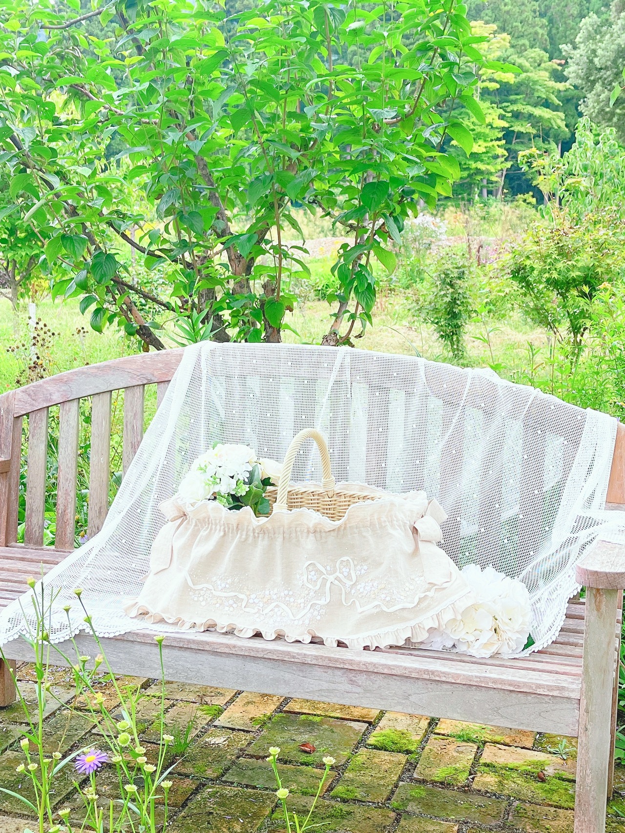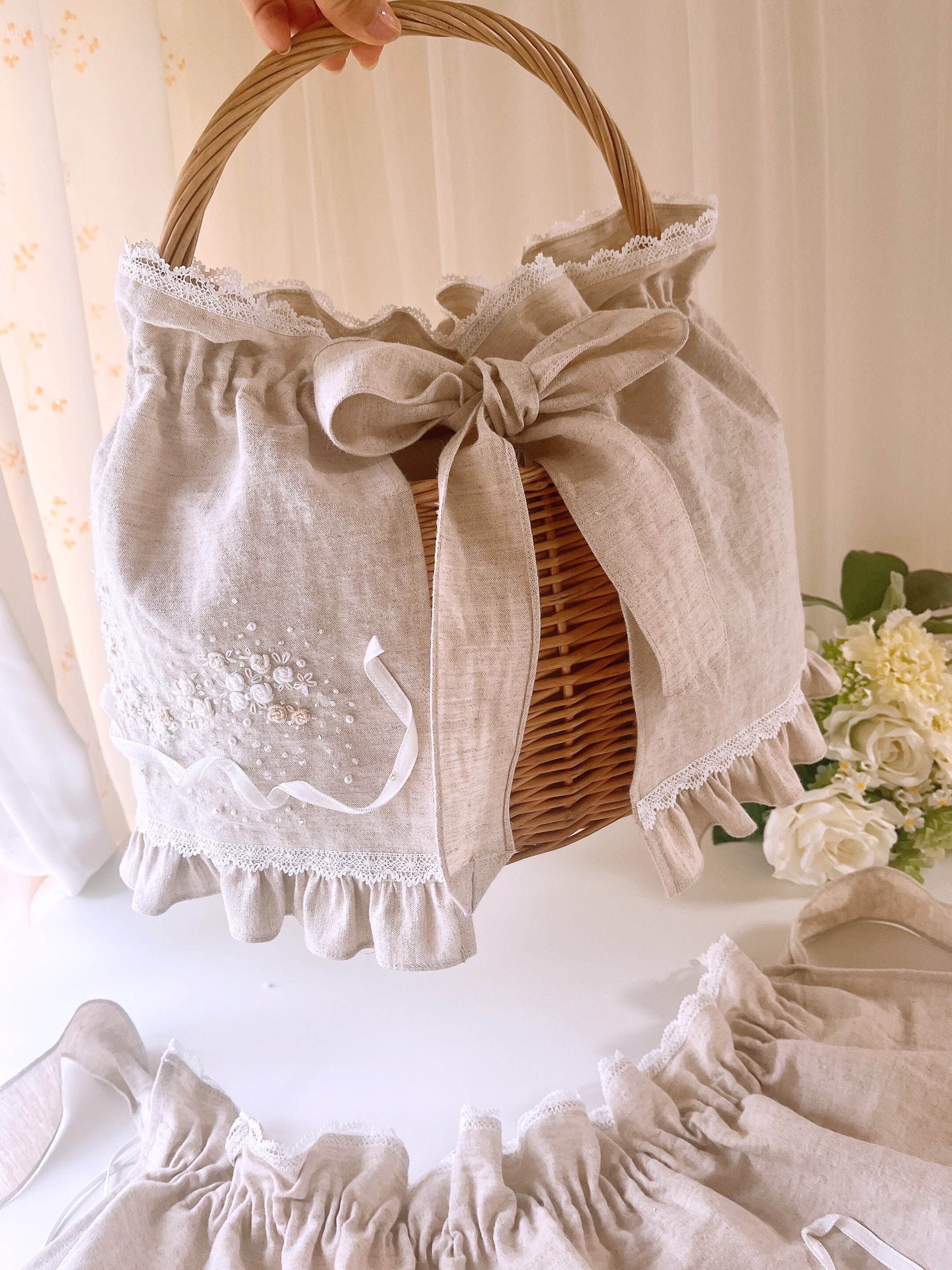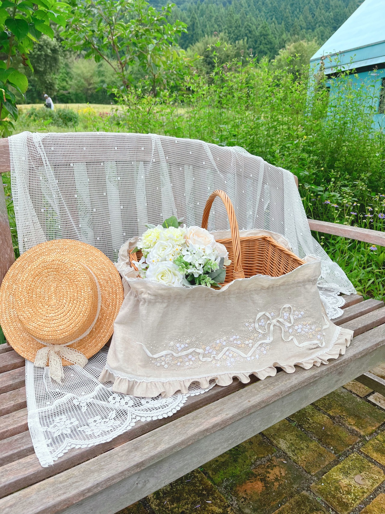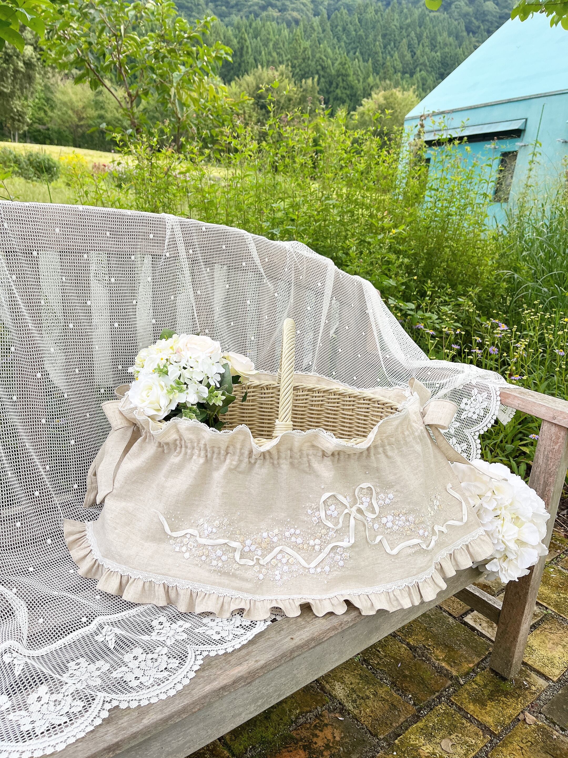 ♡フェアリーフリルバスケットカバー♡ Cream Chantilly White ♡手刺繍のおめかしカバー♡美人White単品♡ホワイトカラー♡大人のかわいいを楽しむ♡ときめきおめかしカバー♡私のお気に入り♡心ときめく一点物 .。.:・゜゚・♡