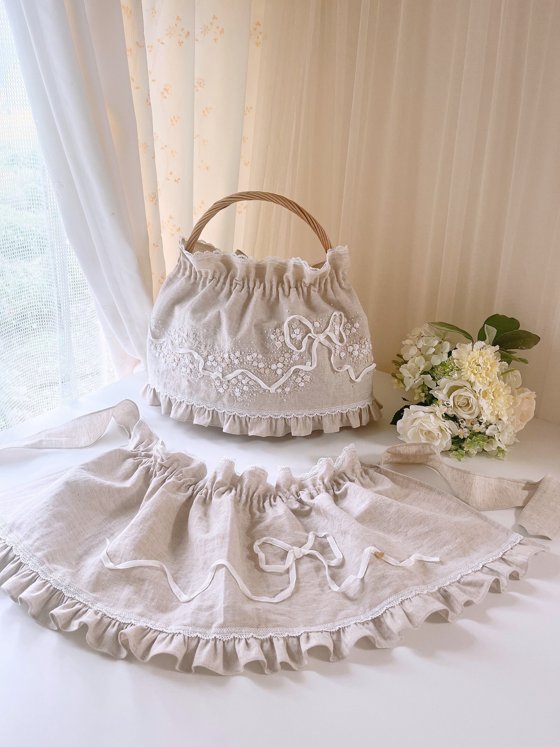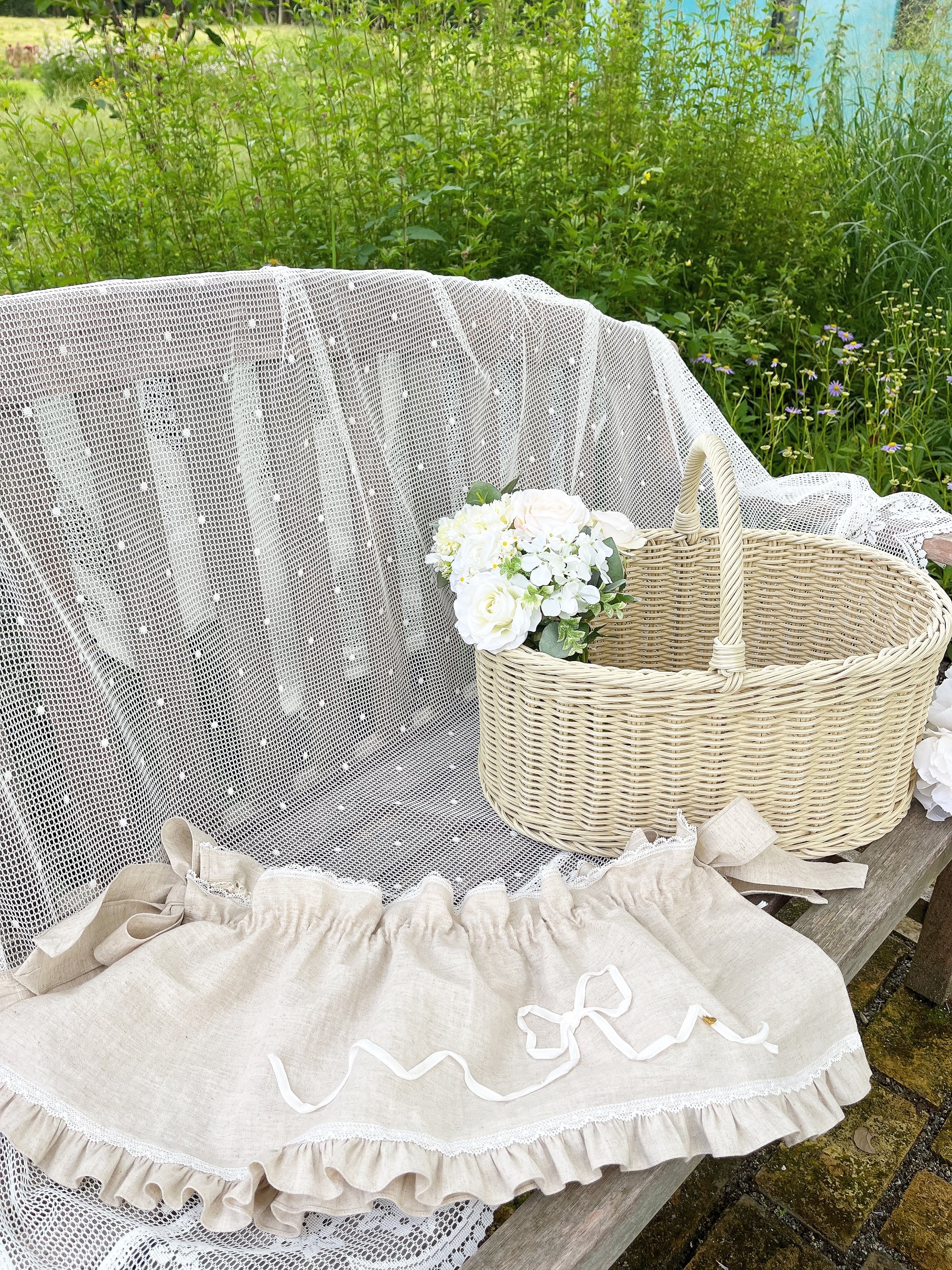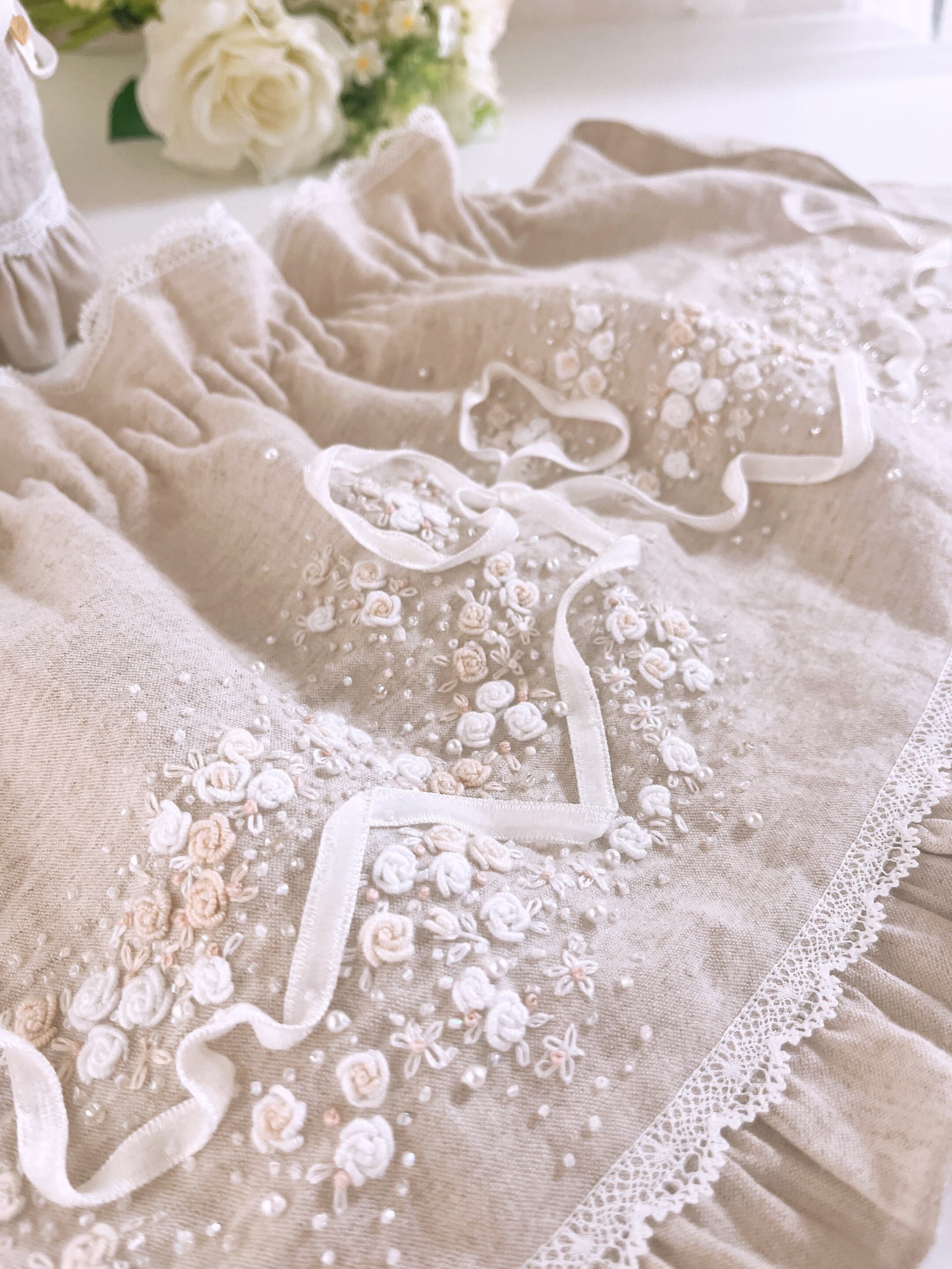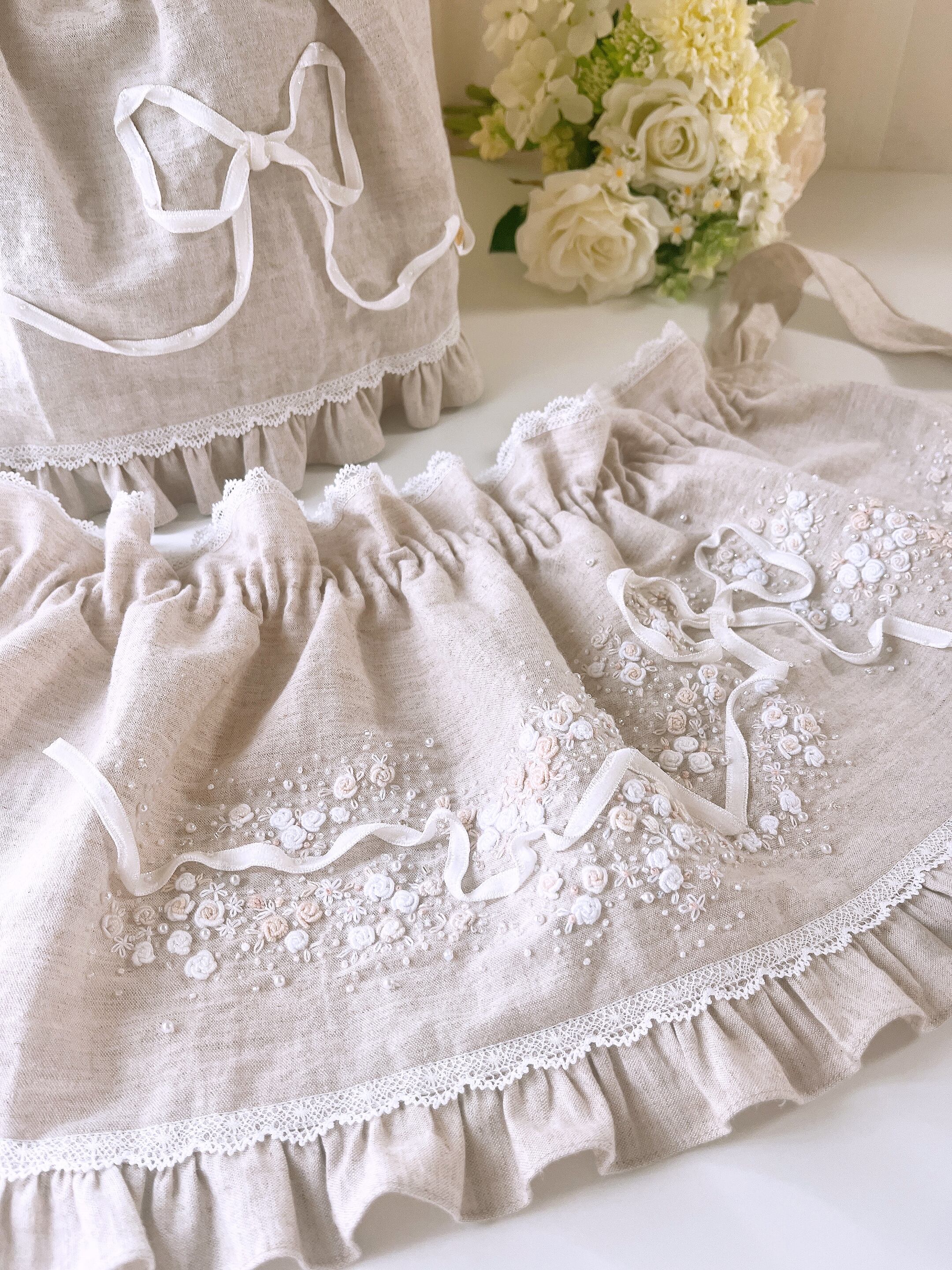 ♡フェアリーフリルバスケットカバー♡ Cream Chantilly White ♡手刺繍のおめかしカバー♡美人White単品♡ホワイトカラー♡大人のかわいいを楽しむ♡ときめきおめかしカバー♡私のお気に入り♡心ときめく一点物 .。.:・゜゚・♡