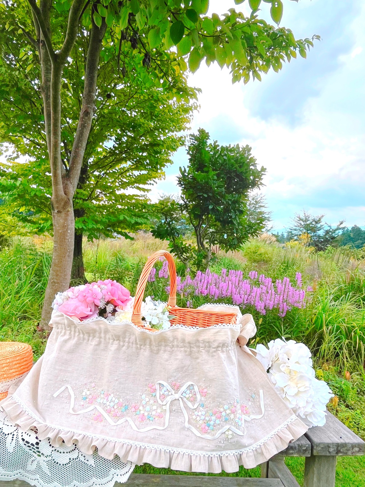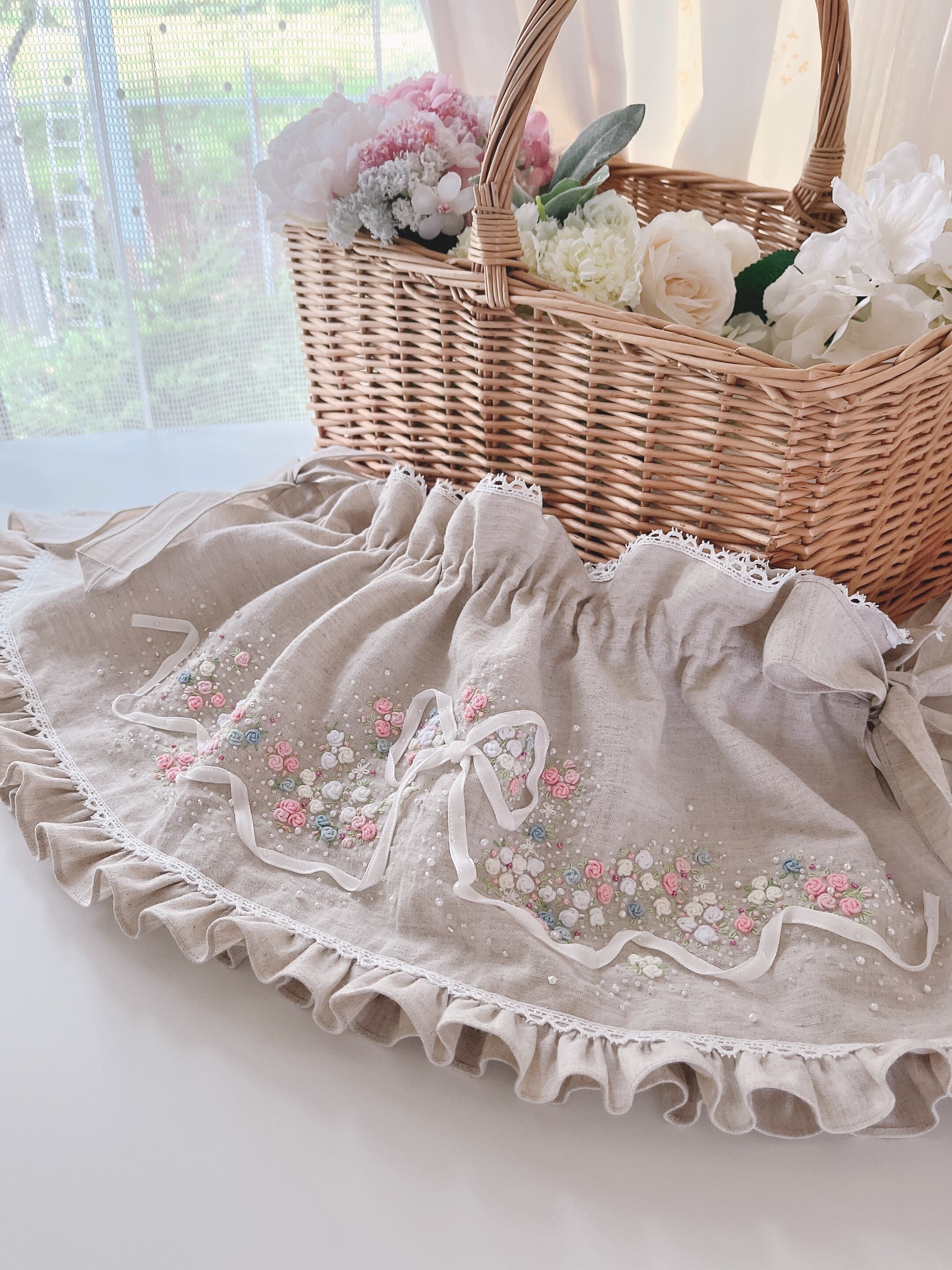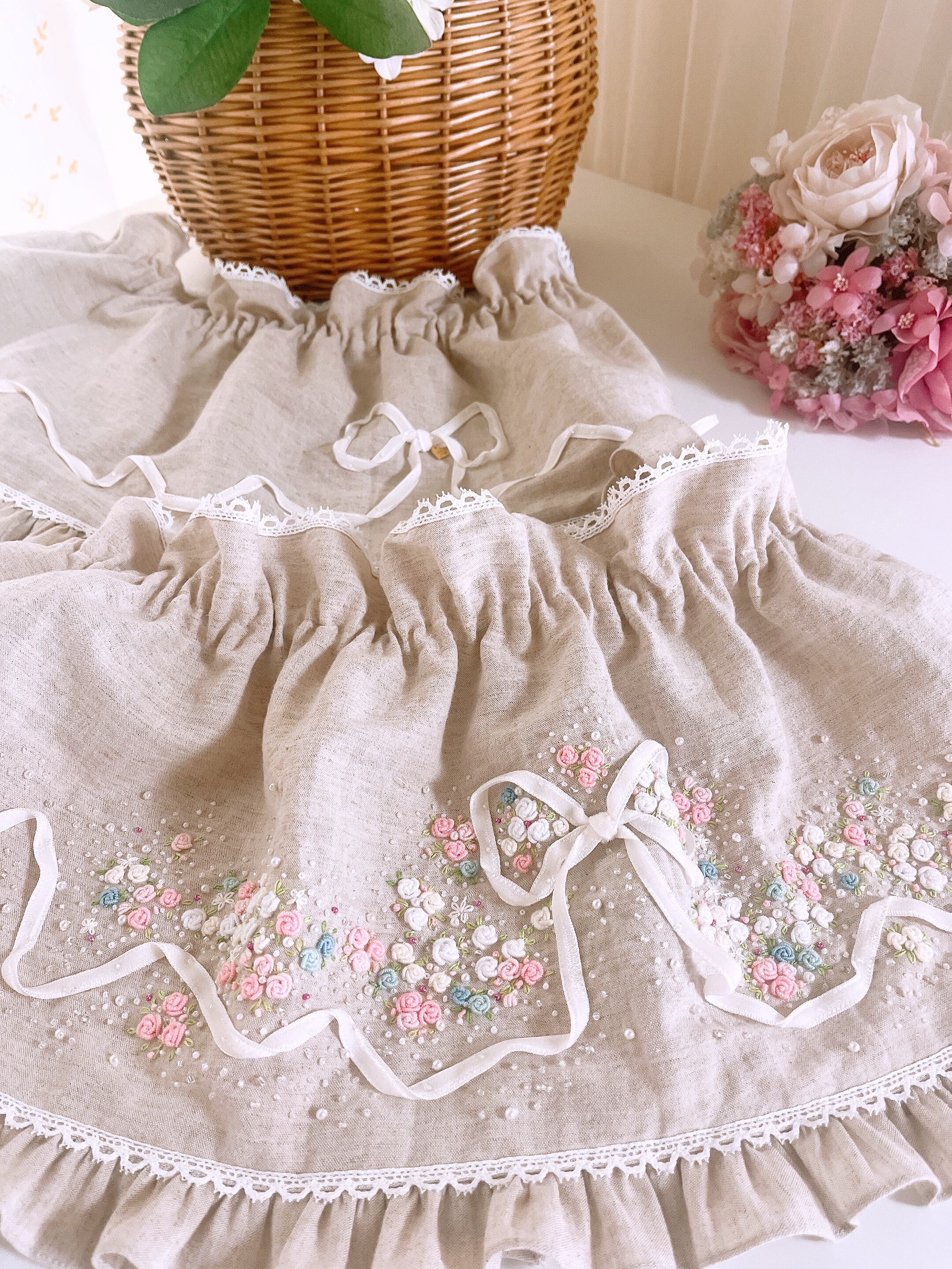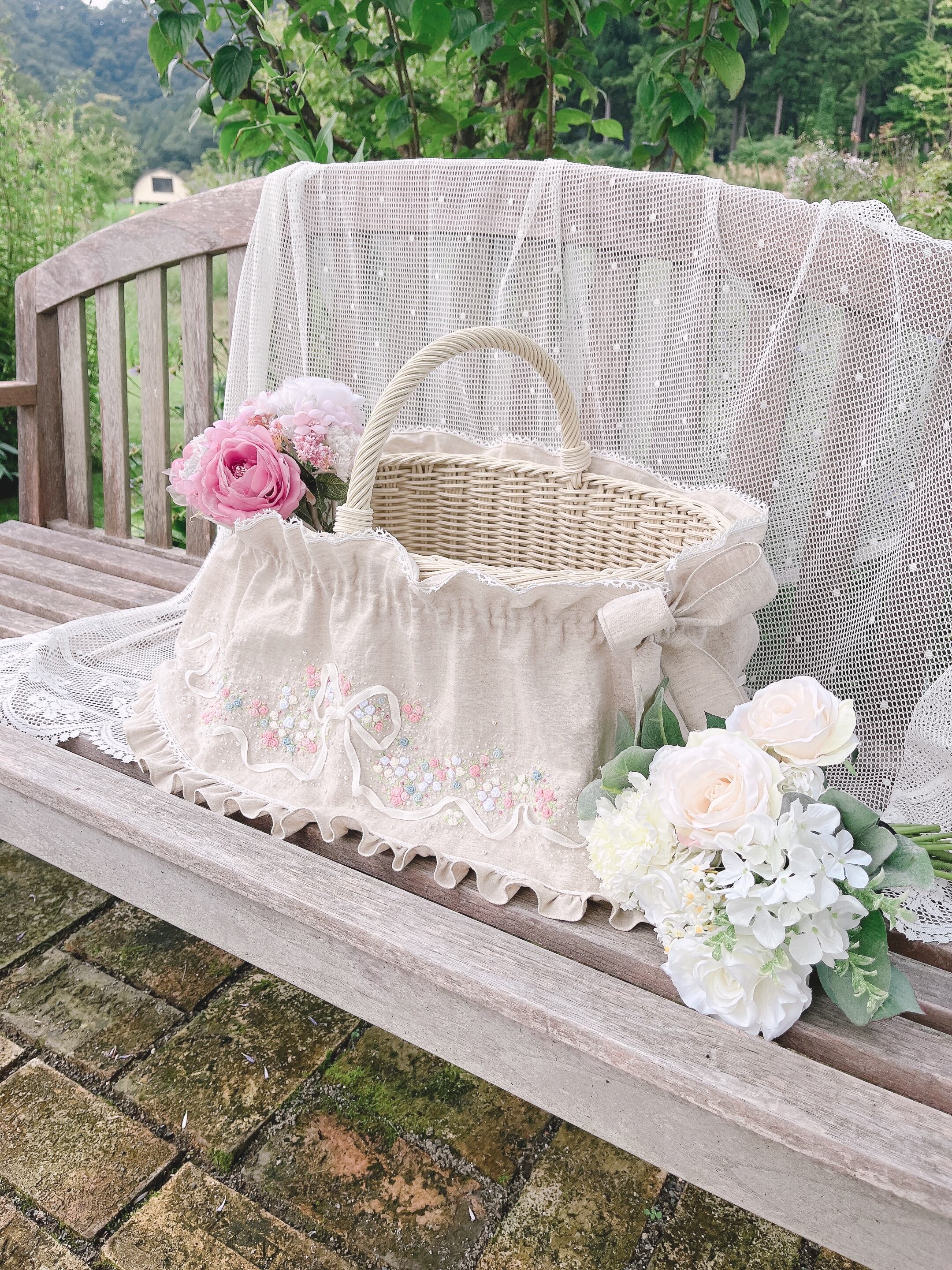 ♡フェアリーフリルバスケットカバー♡ Melty Pastel Pink ♡メルティーパステルピンク♡手刺繍のおめかしカバー♡パステルプリンセス単品♡パステルカラー♡大人のかわいいを楽しむ♡ときめきおめかしカバー♡私のお気に入り♡心ときめく一点物 .。.:・゜゚・♡