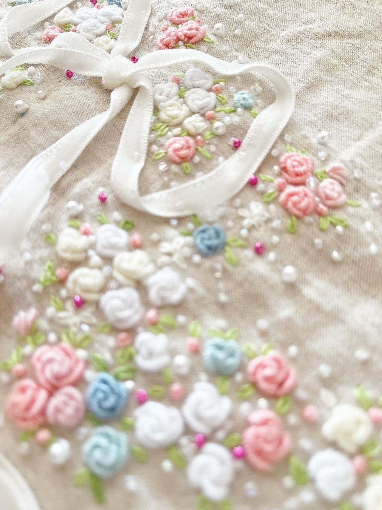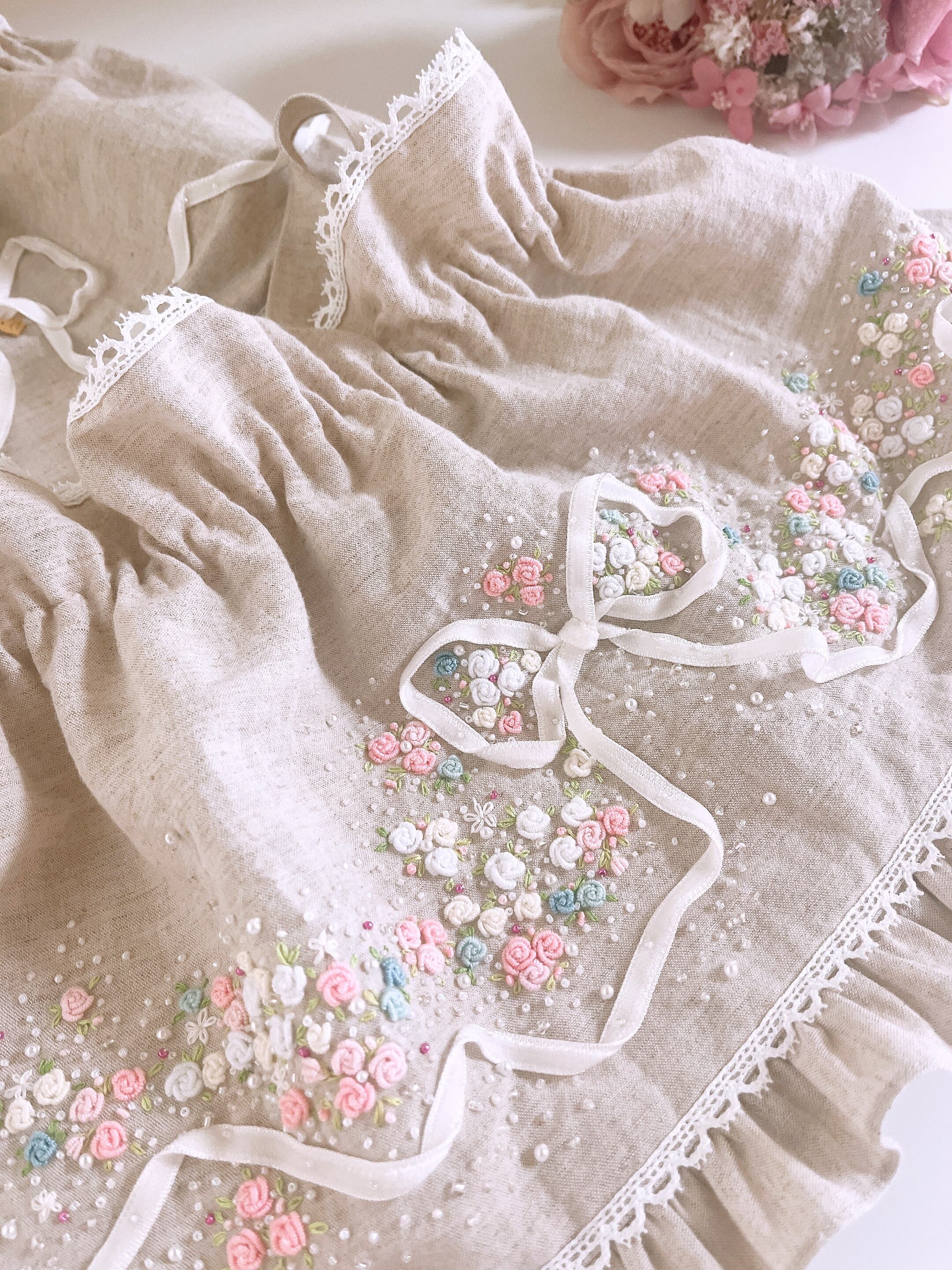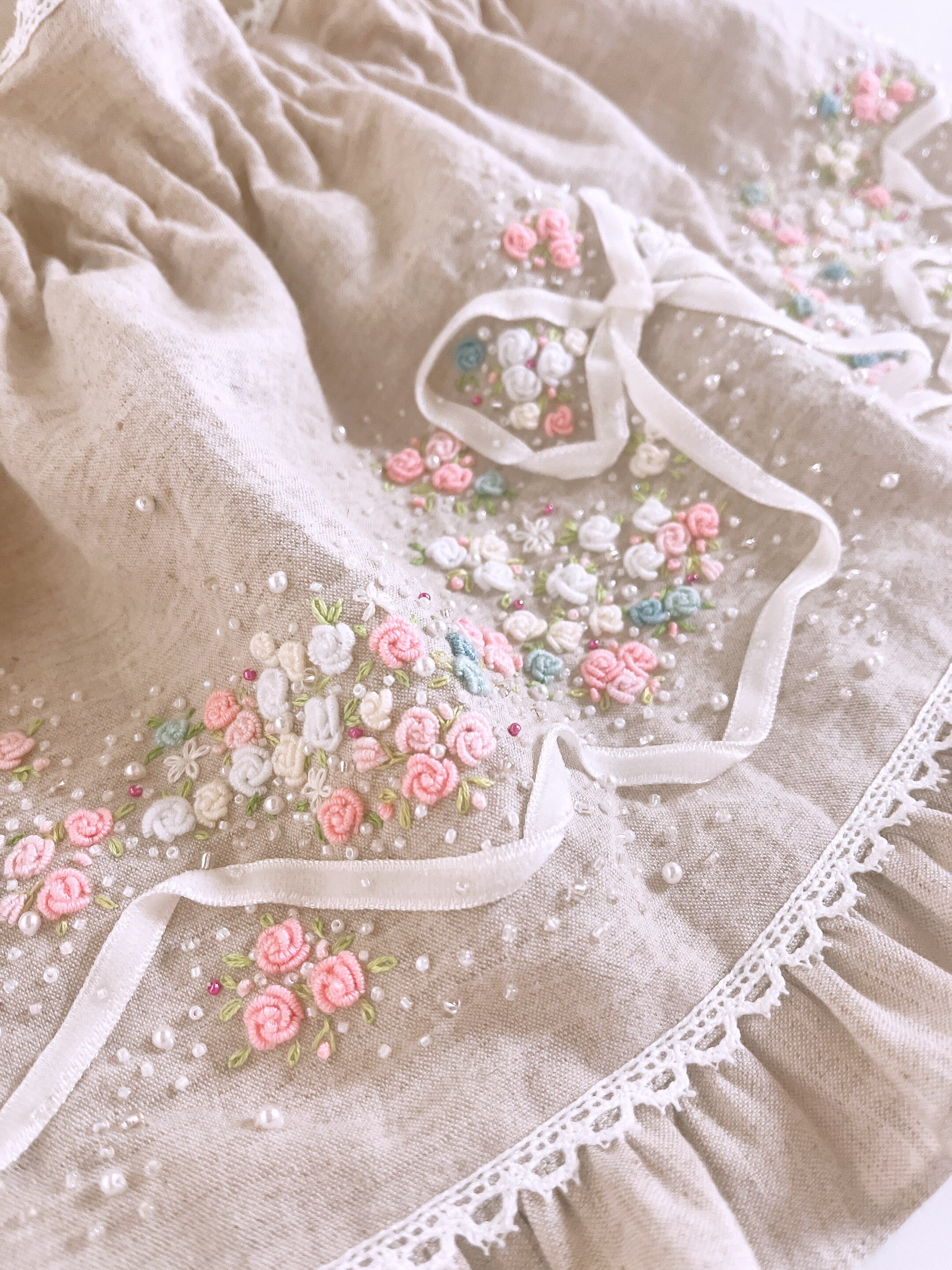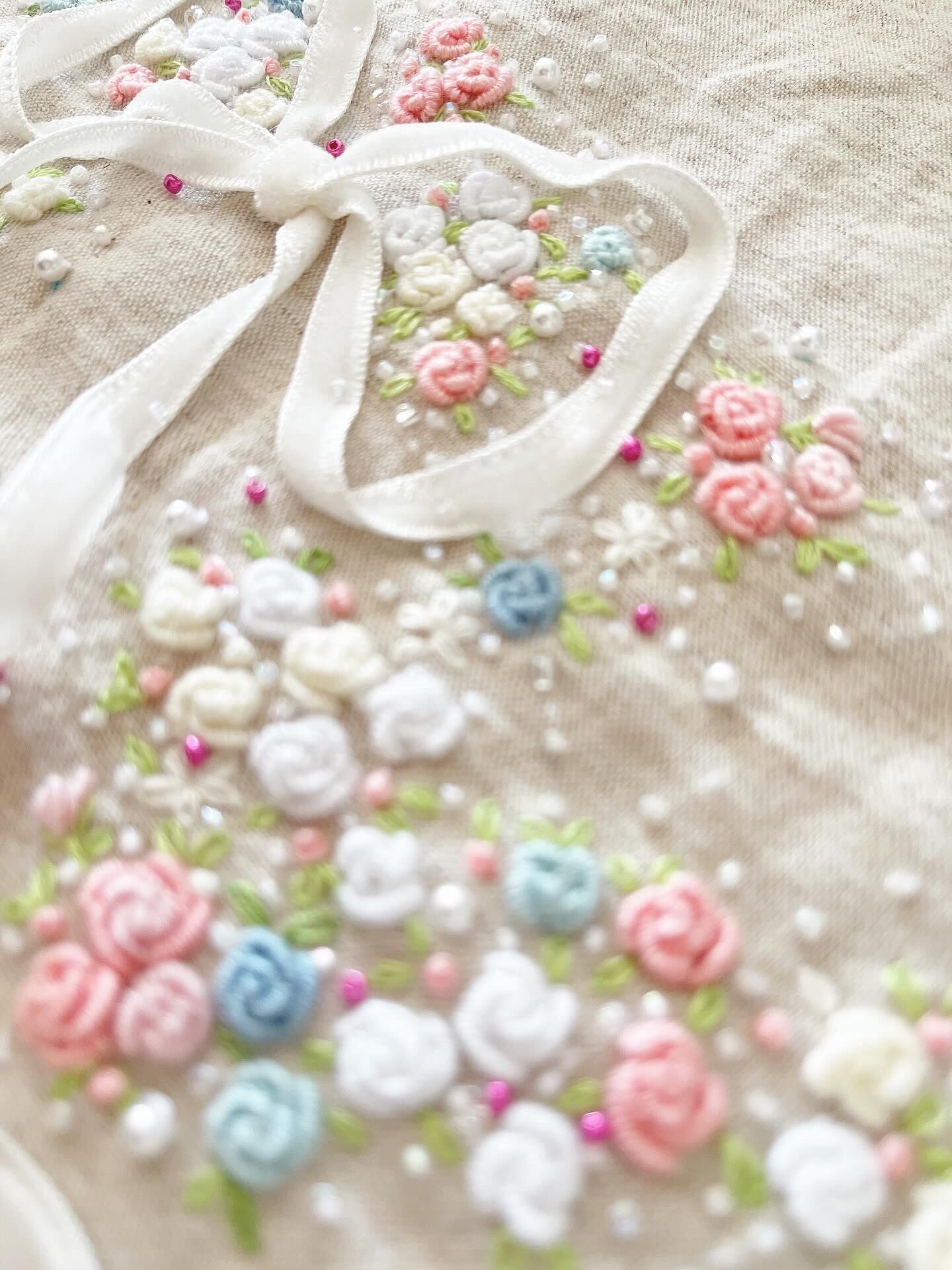 *片面は、手刺繍をたっぷりとあしらった