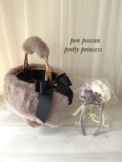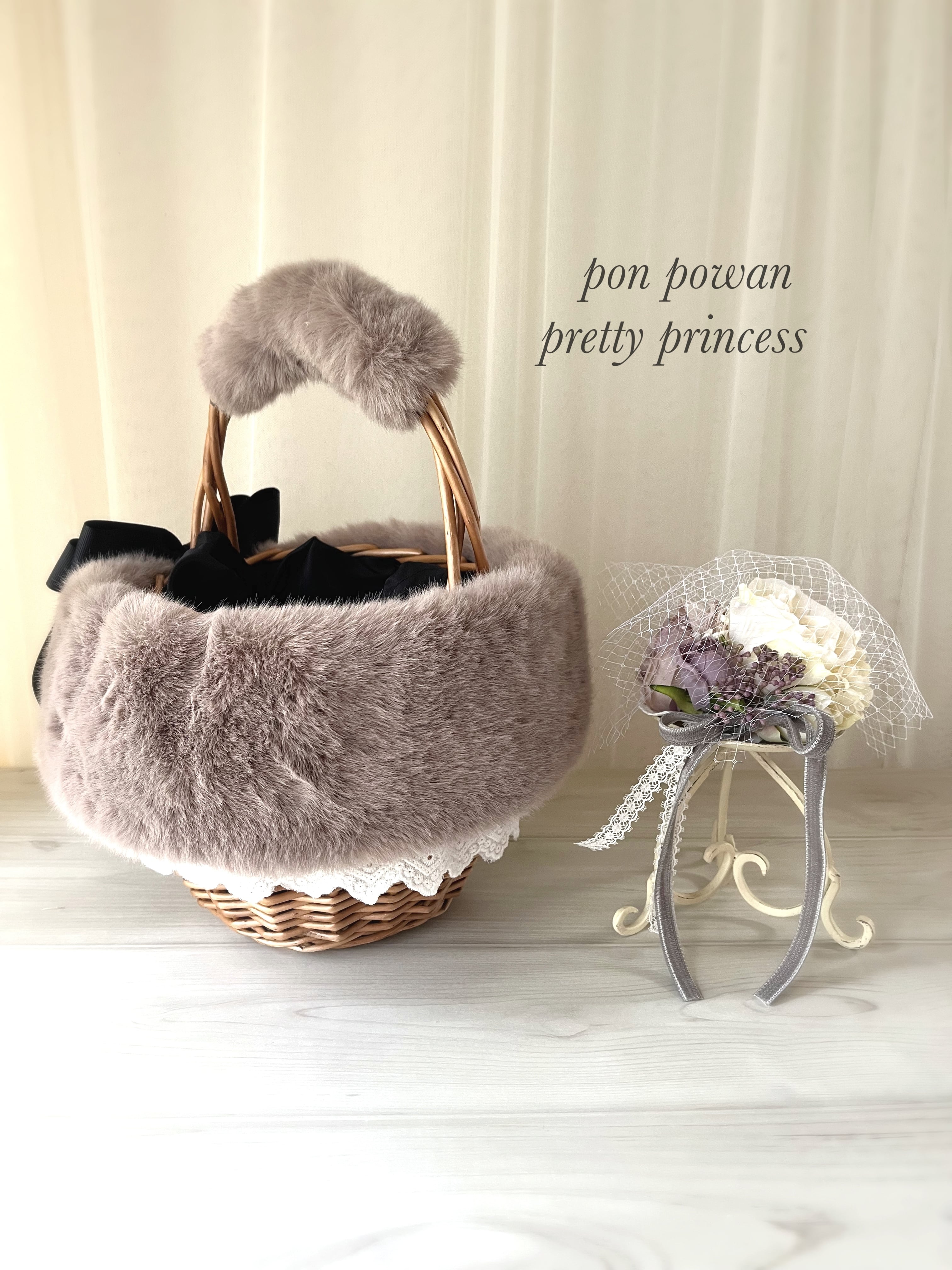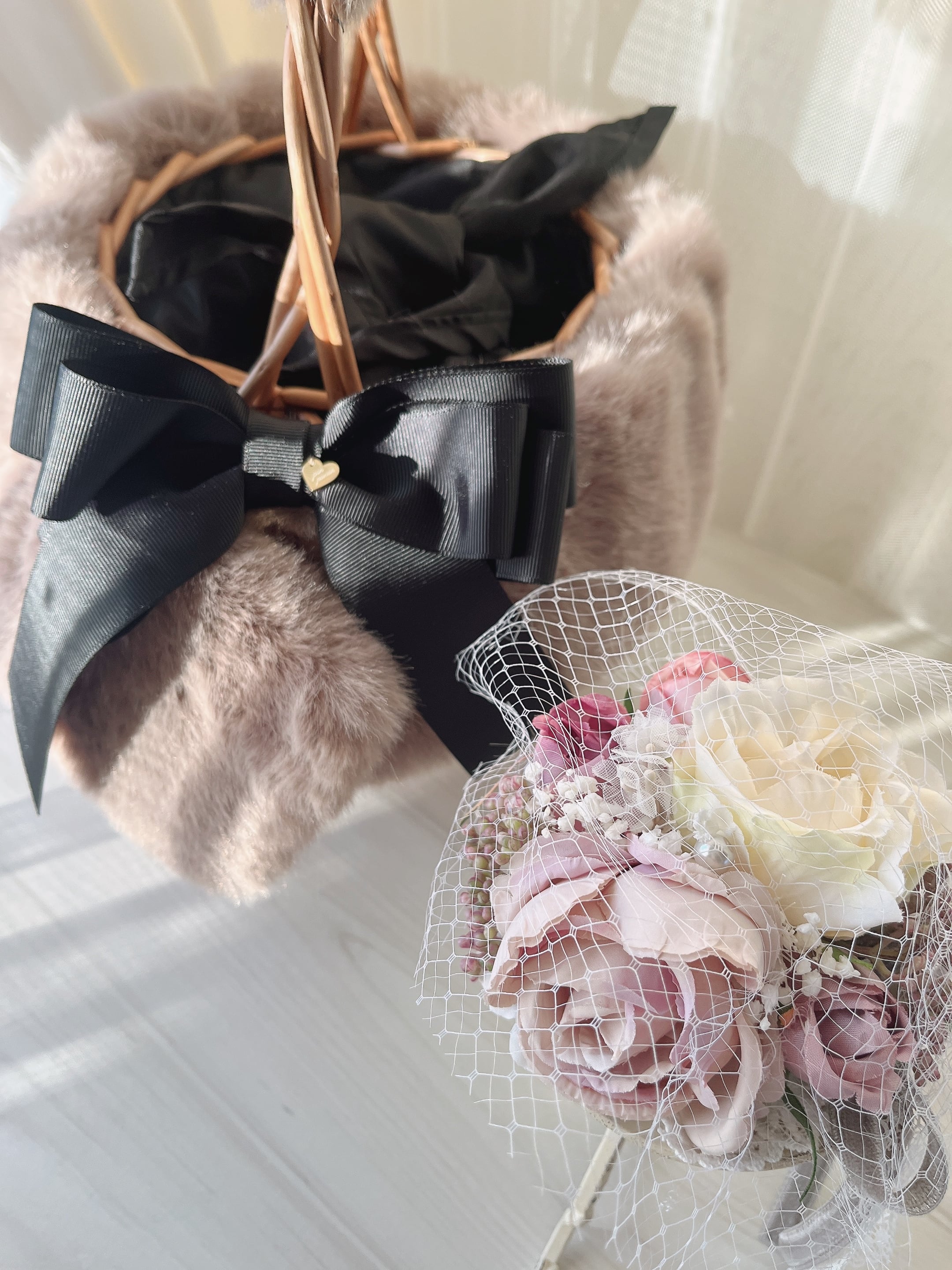 コロンとふわりの冬かごバッグ【ブラック】✳︎大人可愛いバスケット♡エレガントなバスケット♡黒のリボン♡コサージュ付き♡毎日持ちたい♡おしゃれカゴ♡お部屋のインテリア♡私だけの一点物♡ | pon powan