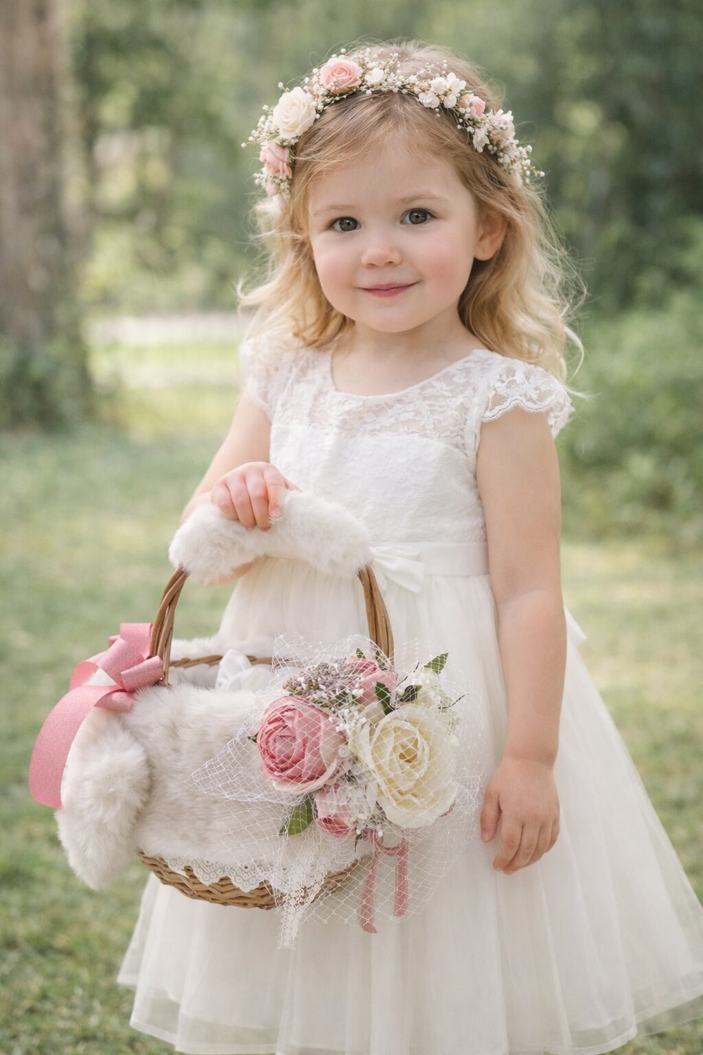 コロンとふわりの冬かごバッグ【ホワイト】✳︎大人可愛いバスケット♡エレガントなバスケット♡ラメピンクのリボン♡コサージュ付き♡毎日持ちたい♡おしゃれカゴ♡お部屋のインテリア♡私だけの一点物♡ | pon powan