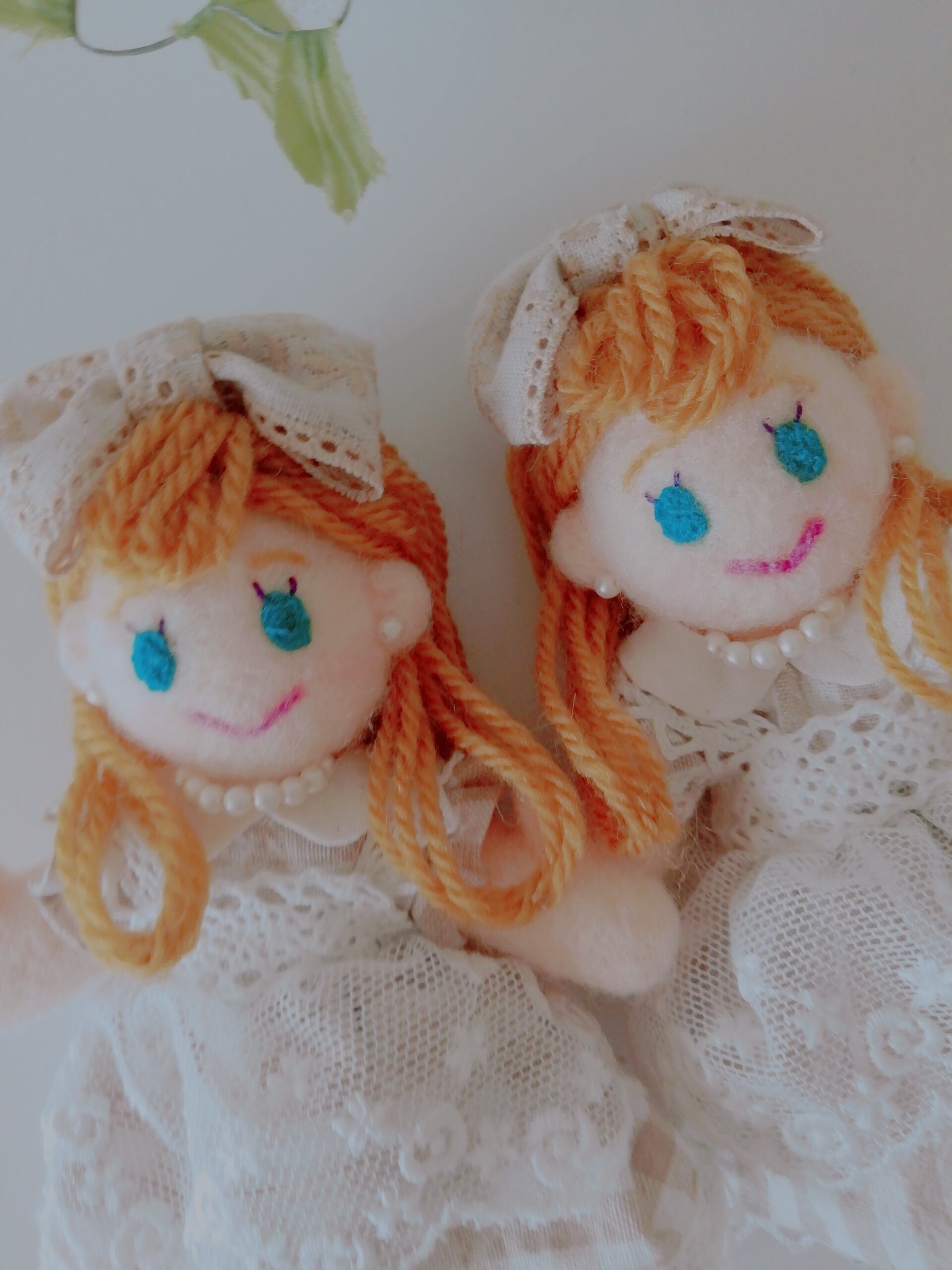 nikoriちゃんナチュラルストラップ・レースエプロン(羊毛フェルトdoll)