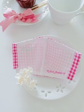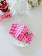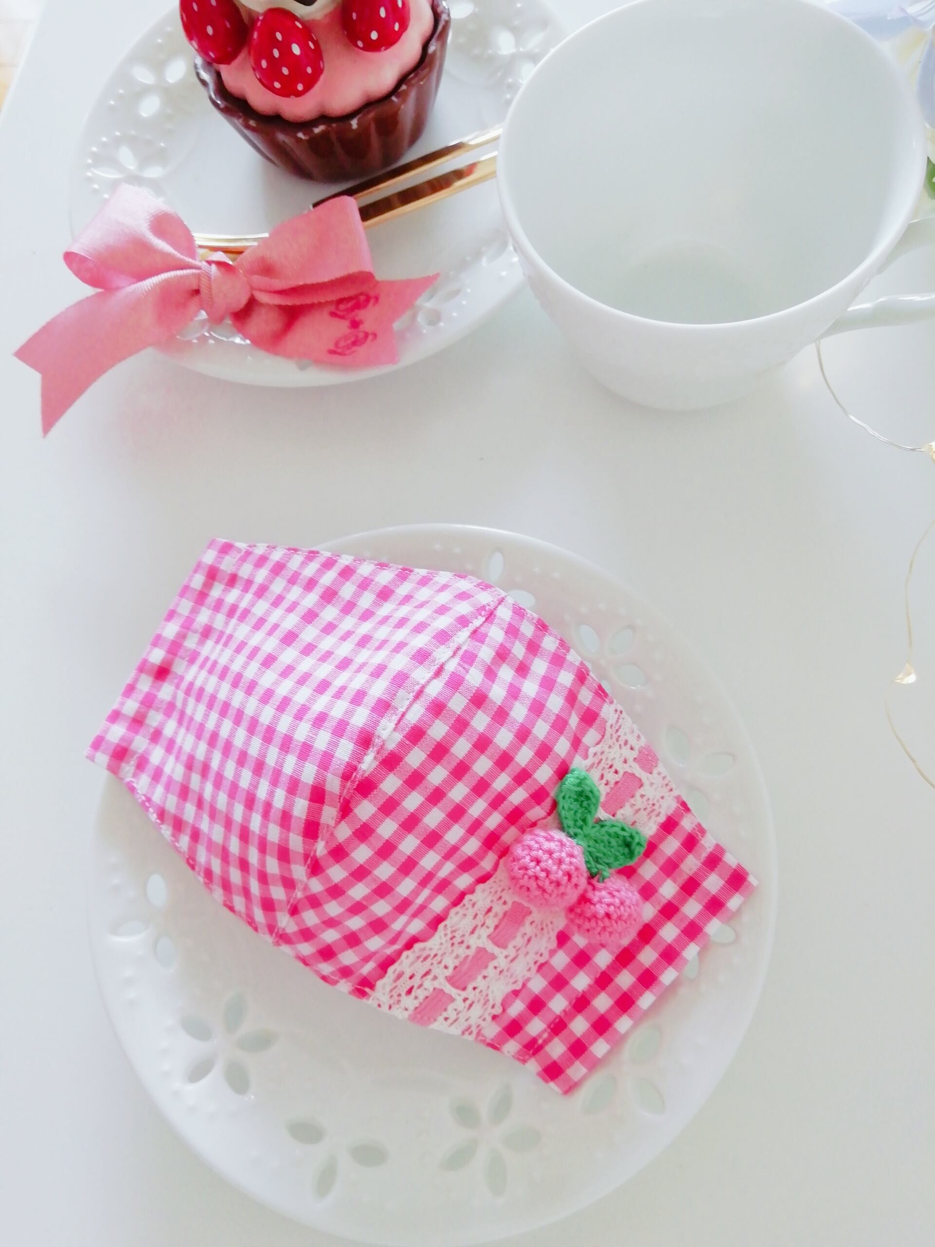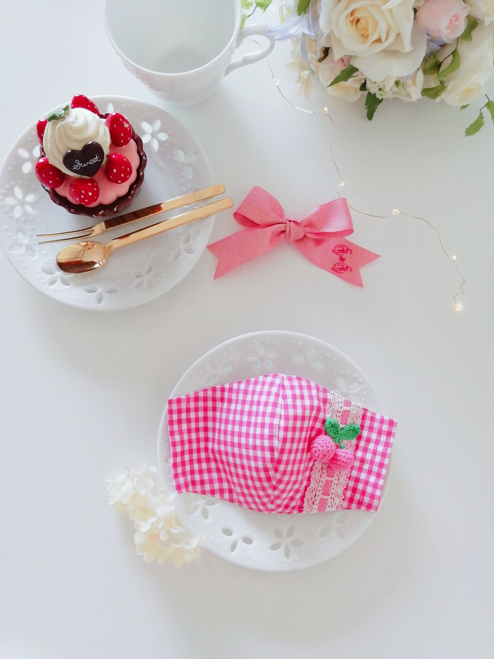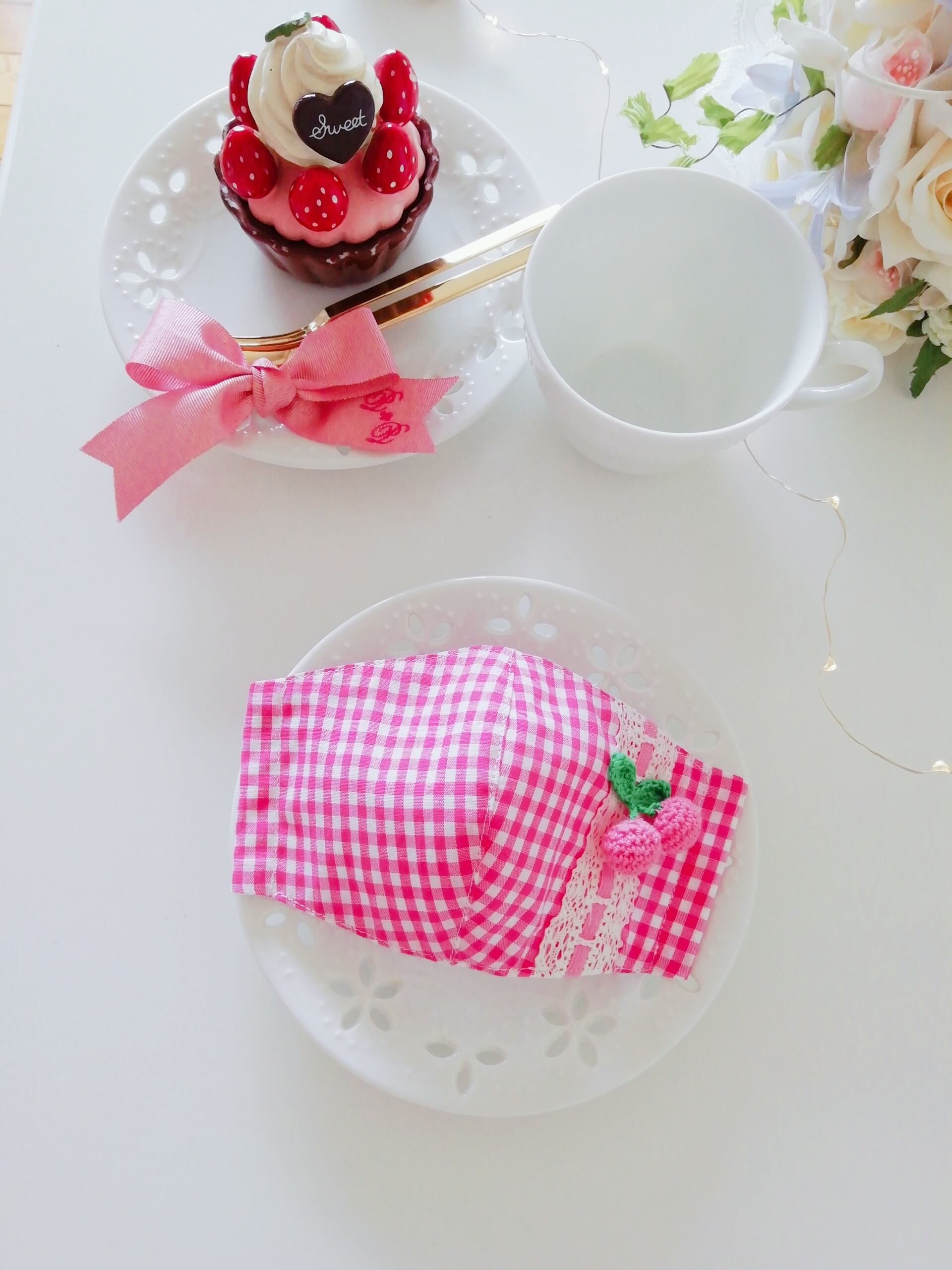 ♡【デザートマスク】レディース(ピンクギンガム×ピンクチェリー)