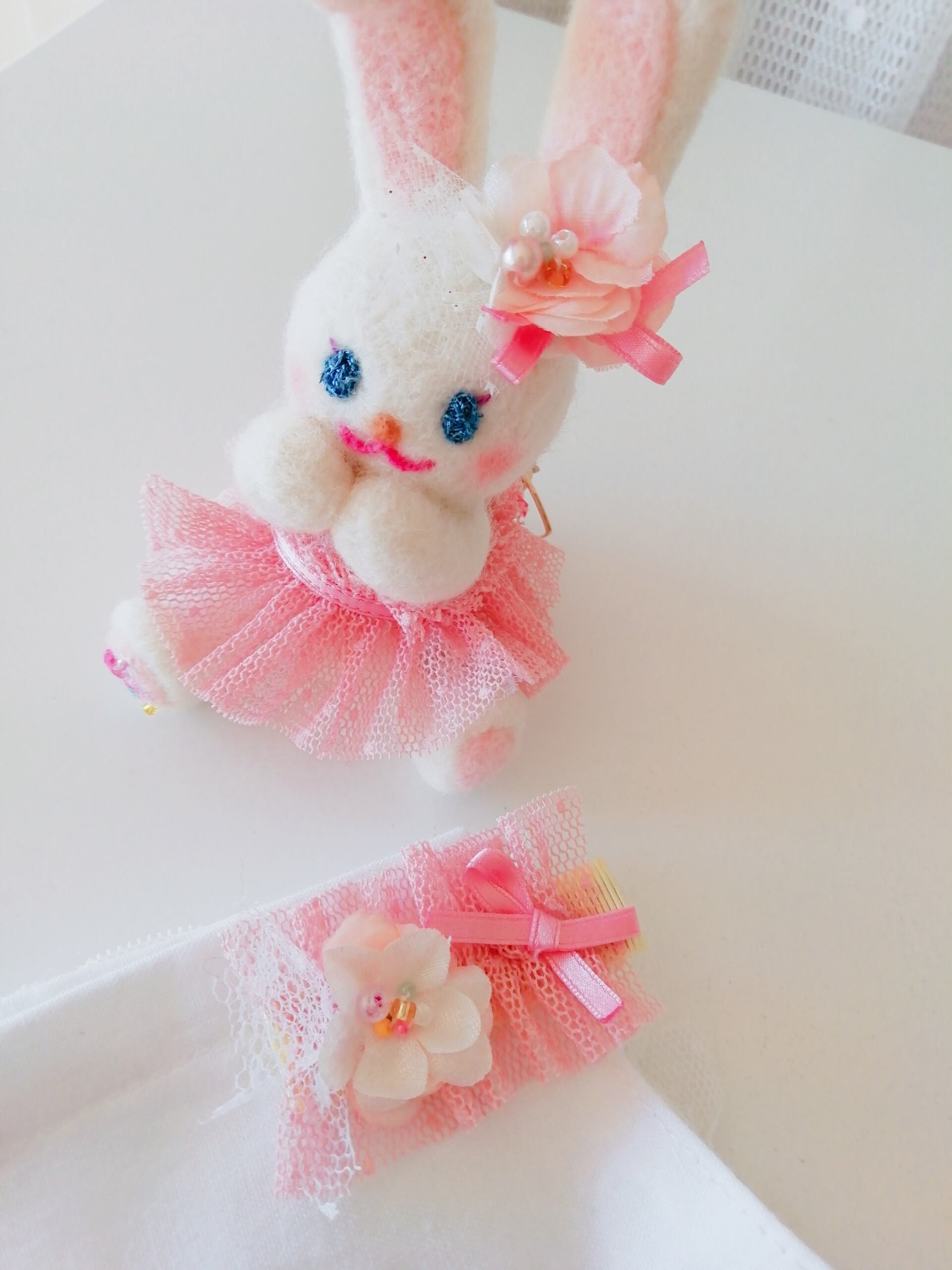 【ポポンちゃん…ミルクホワイト】羊毛フェルトチャーム&ヘアクリップ・