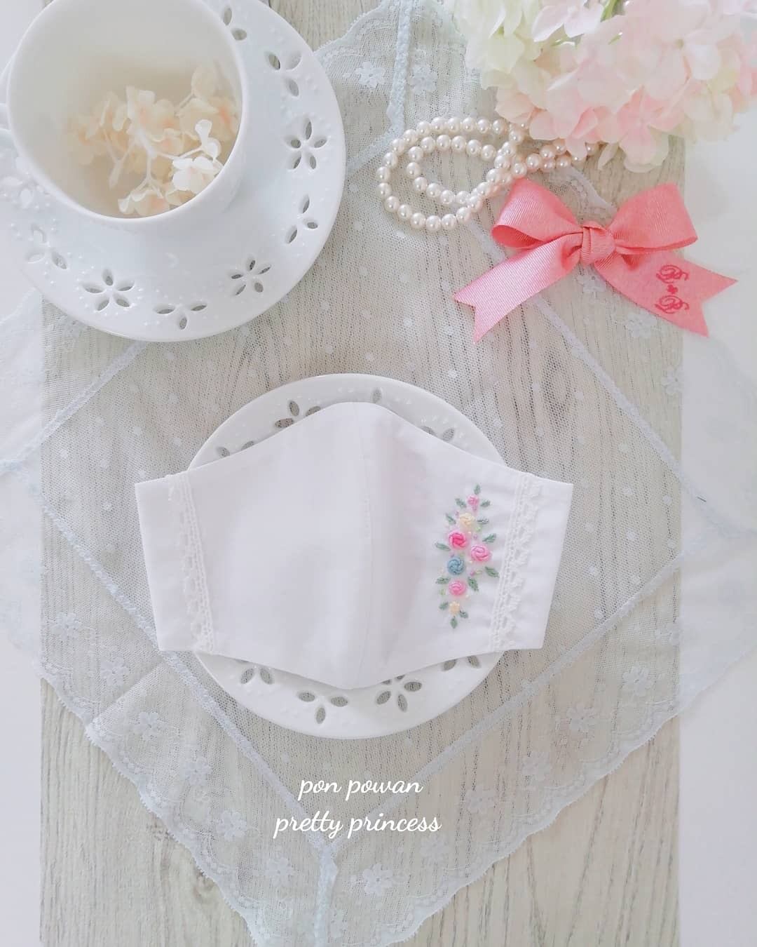 .:*:.清楚なバラの刺繍マスク…。.❁.。♡*. .
