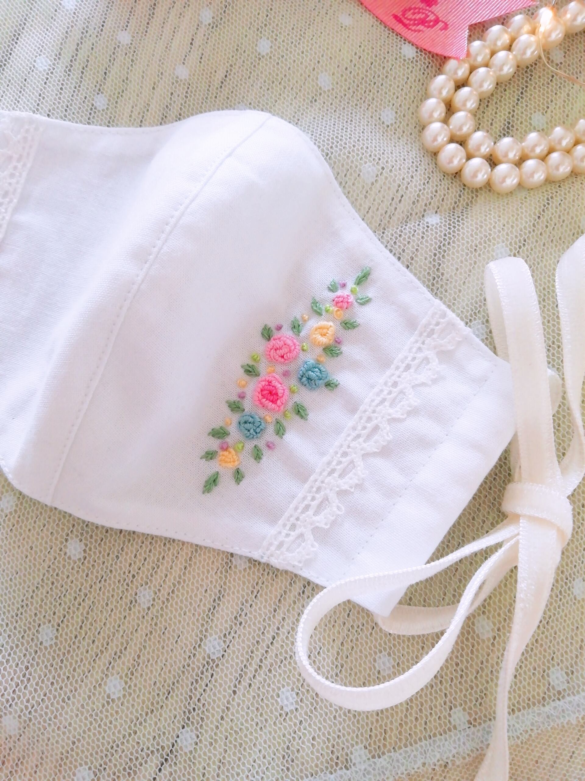 .:*:.清楚なバラの刺繍マスク…。.❁.。♡*. .