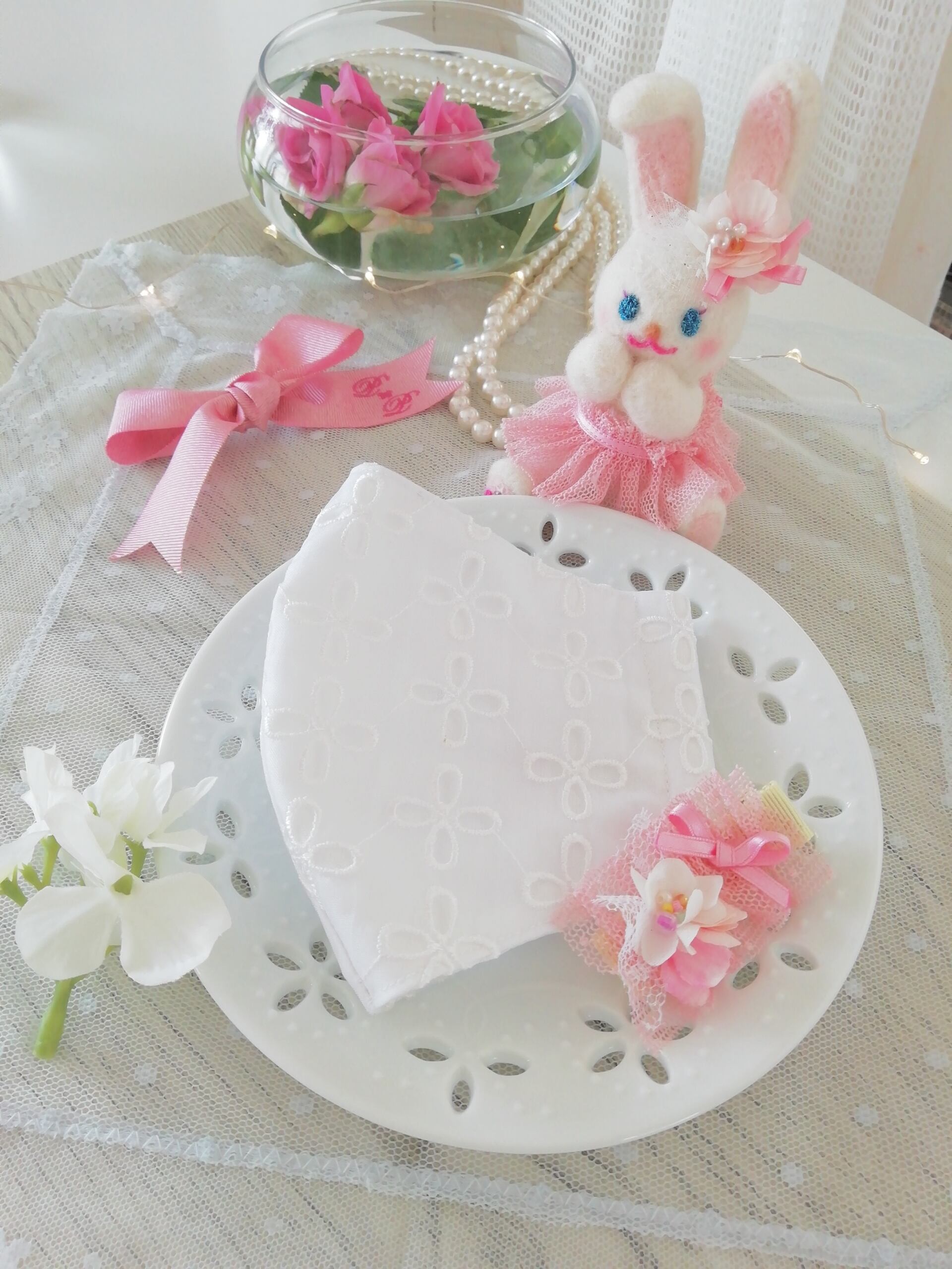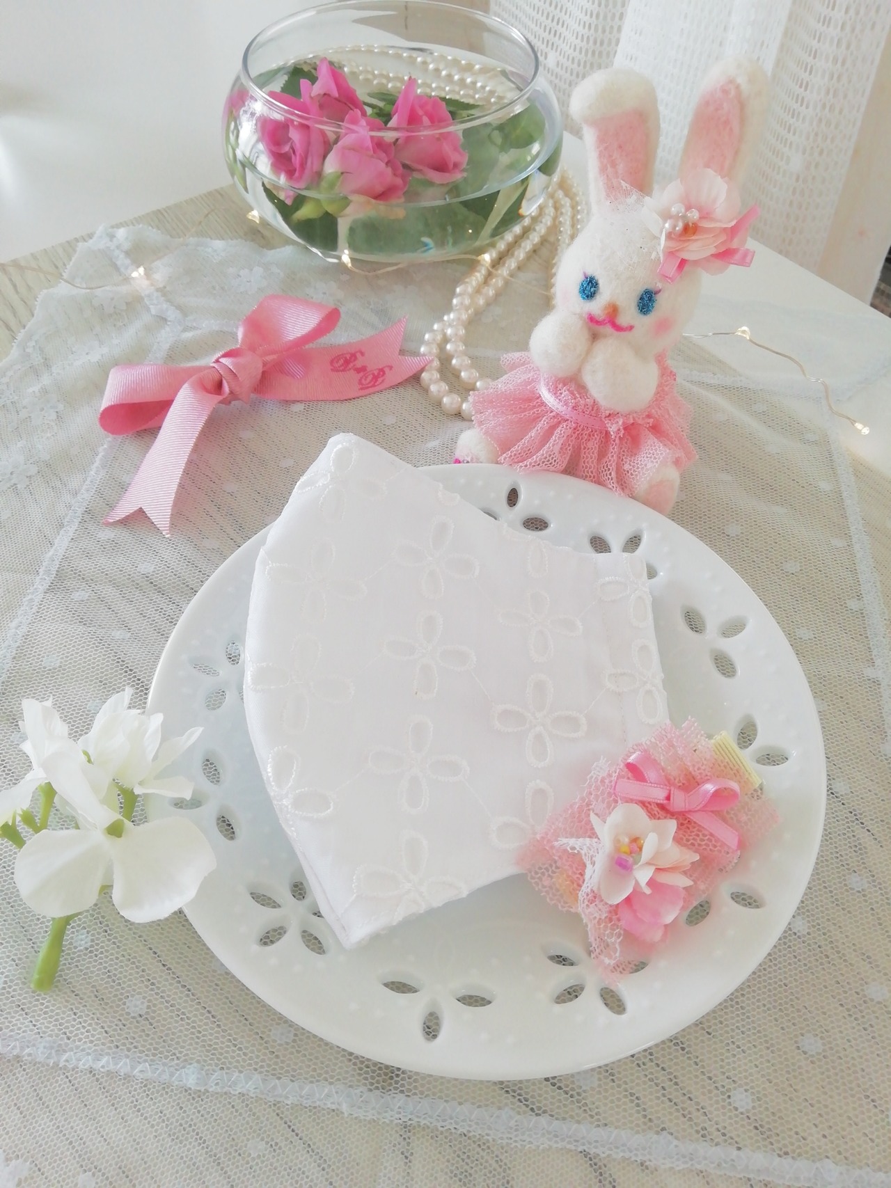 .:*オーガンジーのお花レースマスク…。.❁.。♡*. .