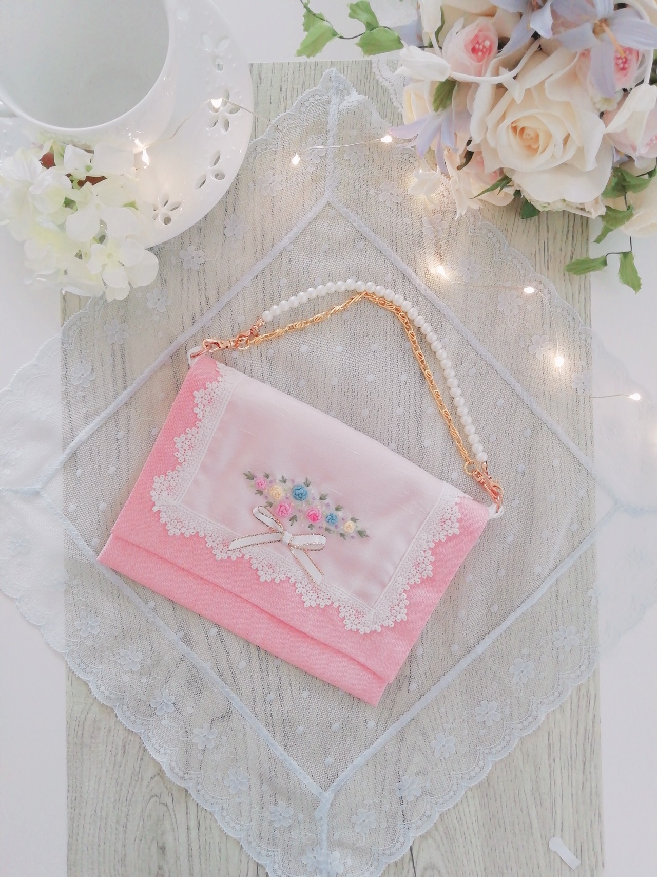 刺繍をレースで囲む事で