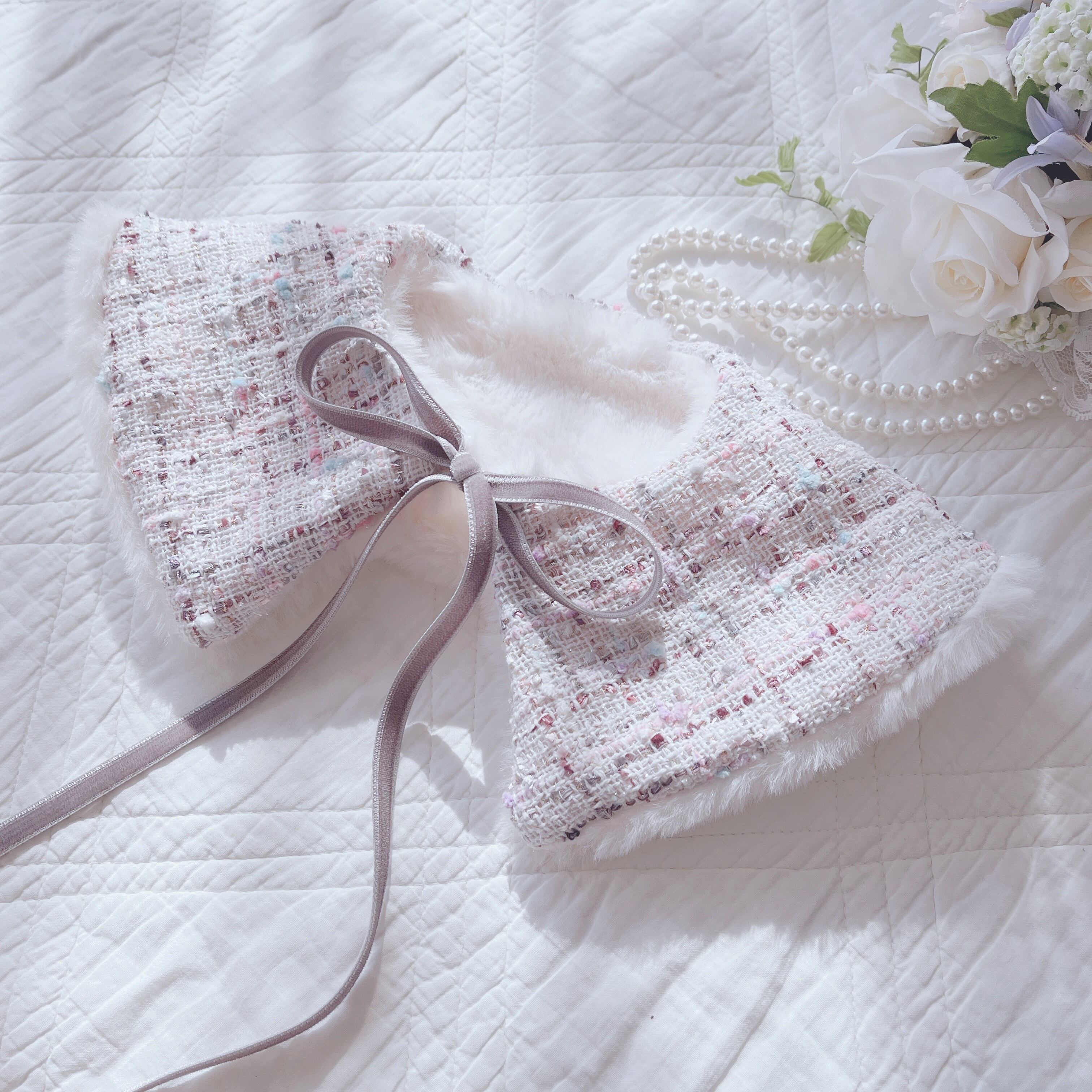 ★ご予約受注販売★選べるセミオーダー♡ホワイト【2wayつけ衿&スカート】大人可愛いツィード生地 ✳︎お上品✳︎エレガント✳︎お嬢様✳︎コーデ♡