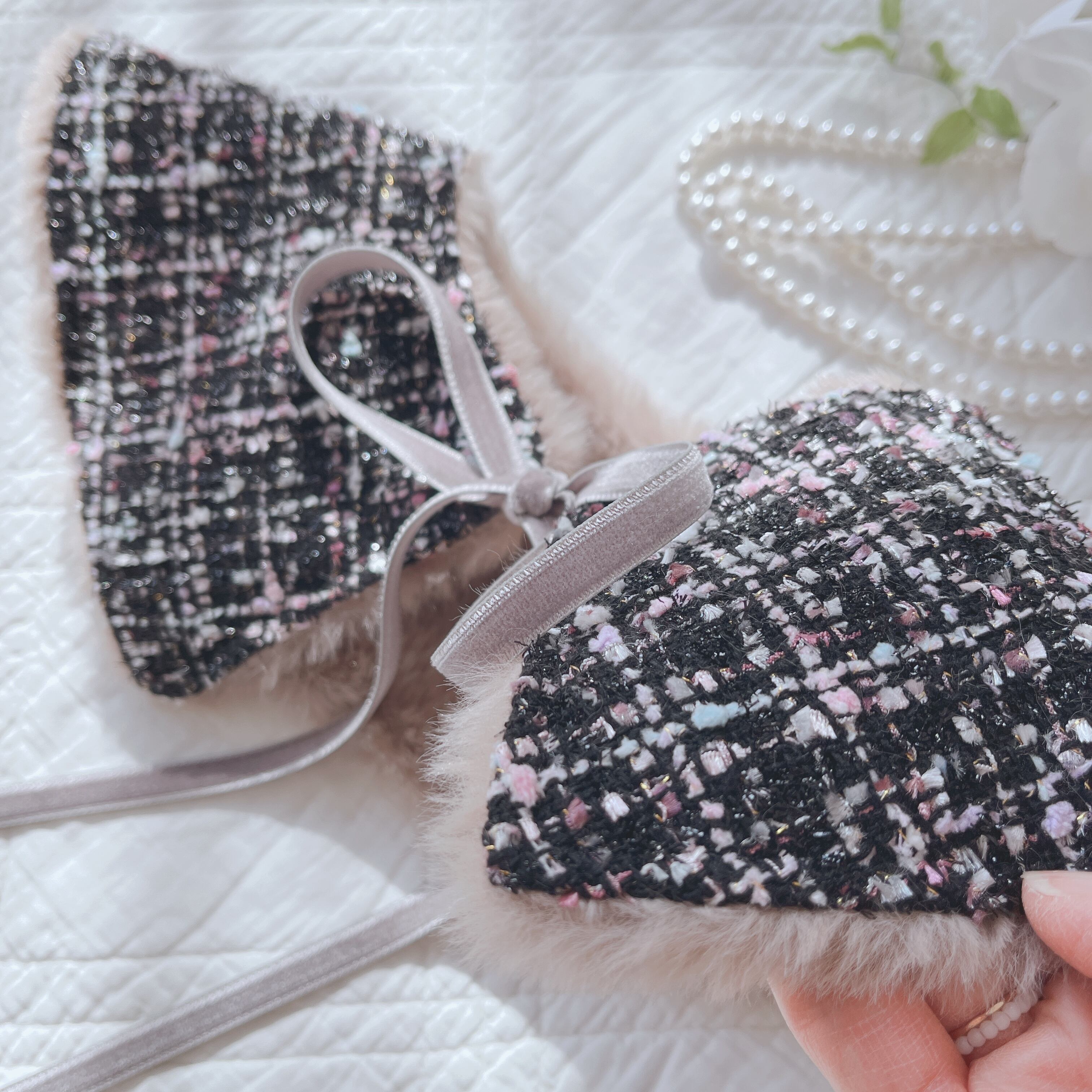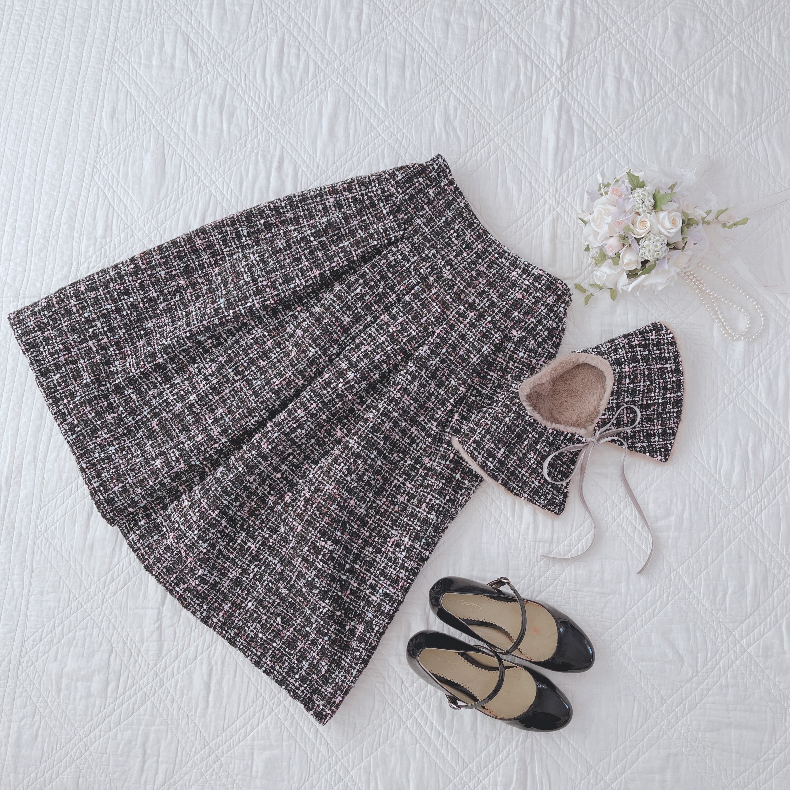 ★ご予約受注販売★選べるセミオーダー♡ブラック【2wayつけ衿&スカート】大人可愛いツィード生地 ✳︎お上品✳︎エレガント✳︎お嬢様✳︎コーデ♡