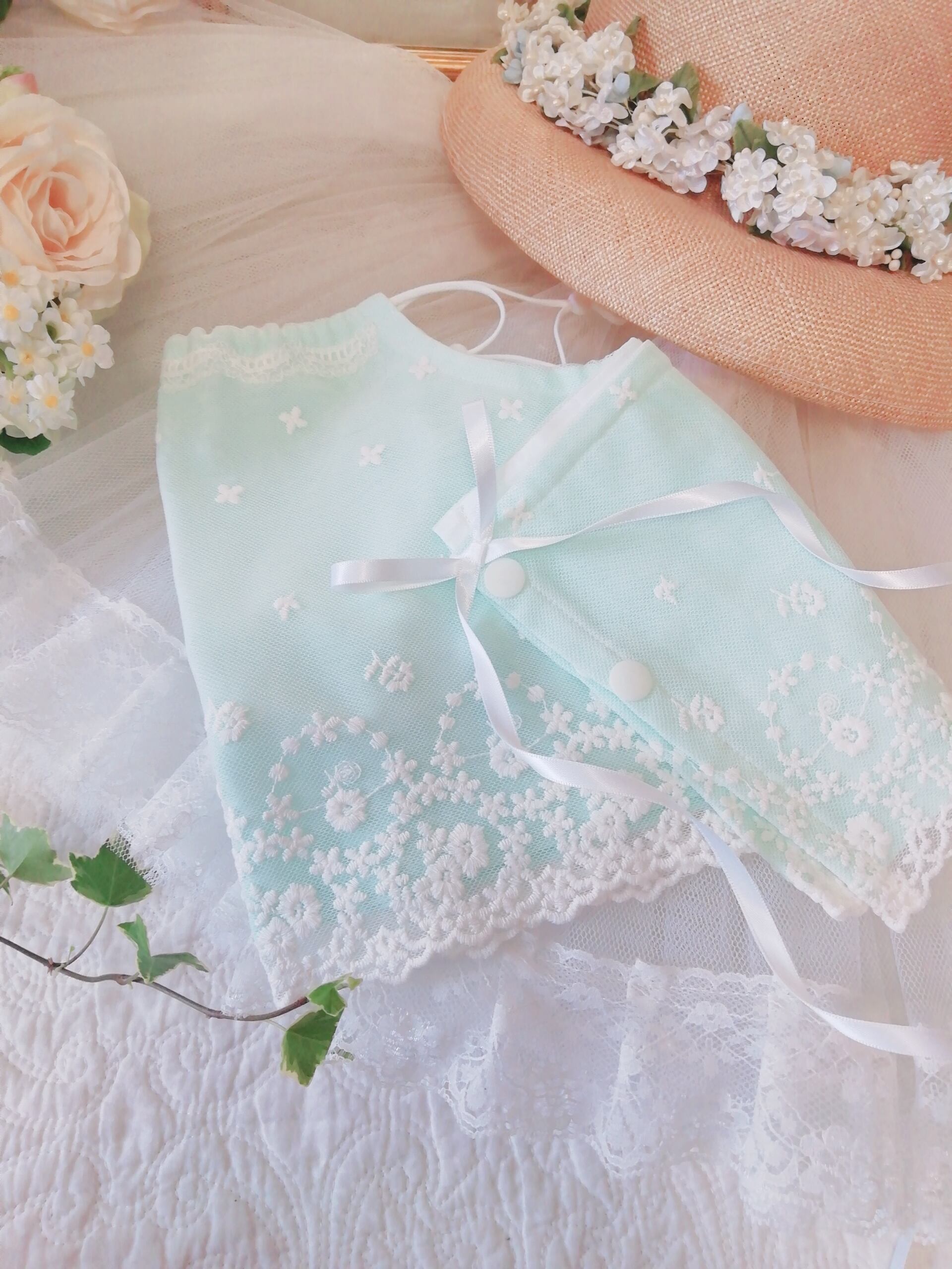 【美人ベールマスク】カラーNo.④ミント×白リボン♡エレガントなチュールレースの美人ベールマスク♡ゆれるWhiteサテンリボン◎レディースフリーサイズ