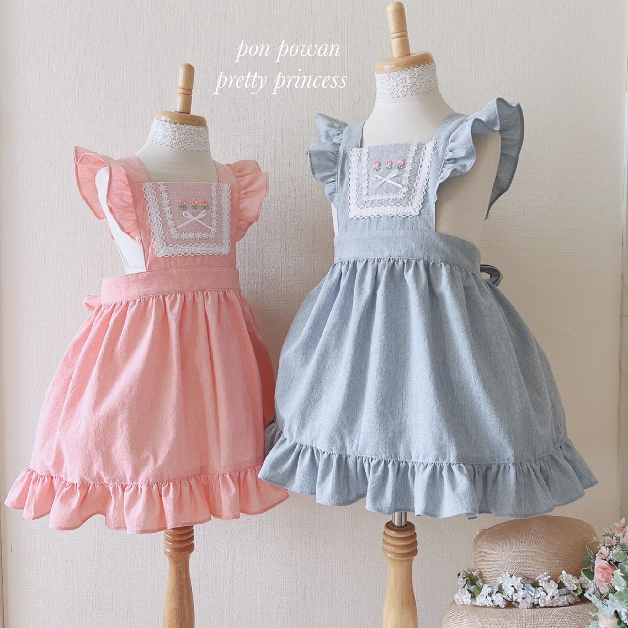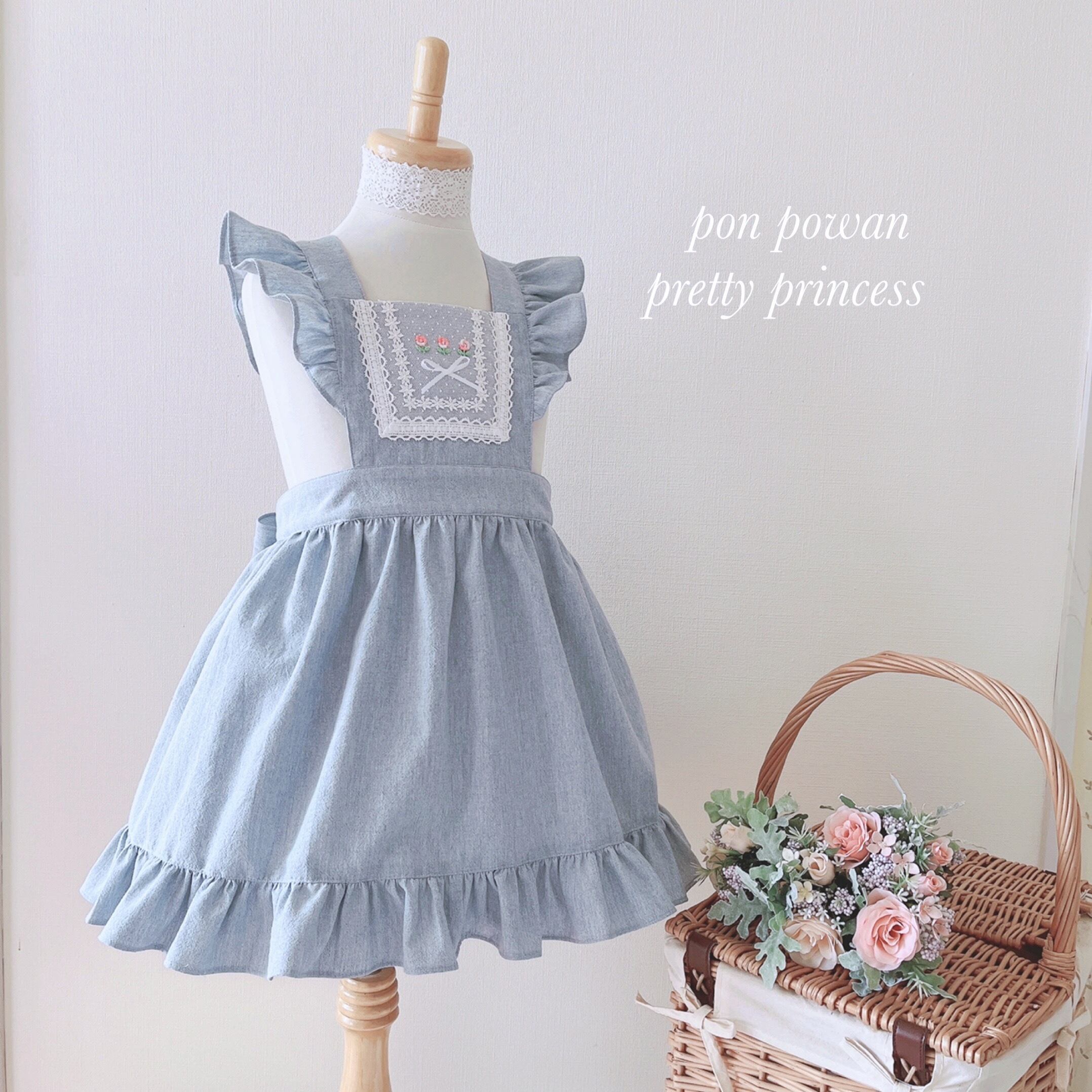 ♡princessシルエットの『ふわっと広がるフリルエプロン』ナチュラルサックス