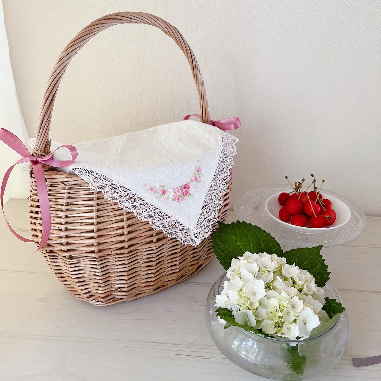 おめかしベールカバー♡ 単品《ピンク》手刺繍のハンカチ♡目隠しカバー♡