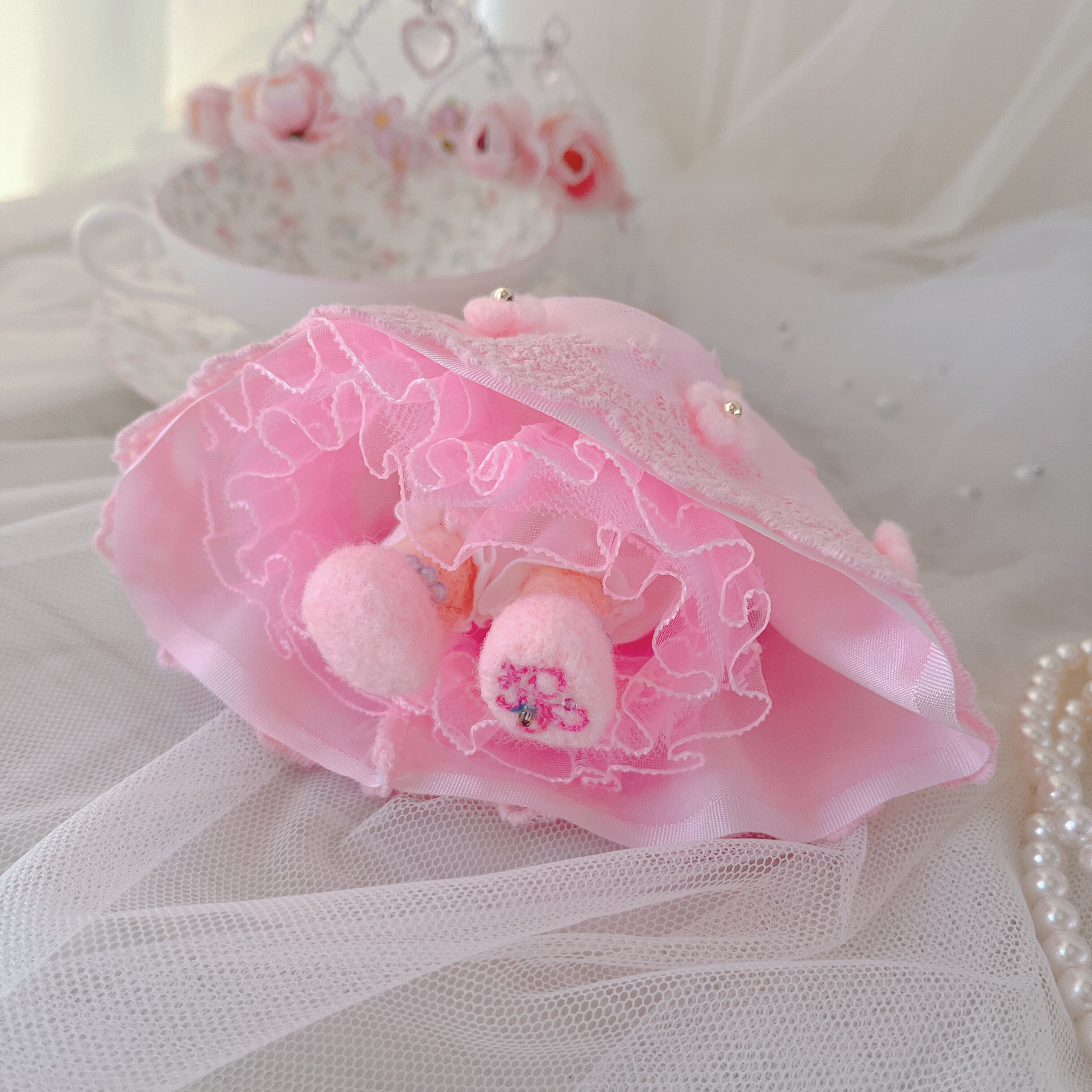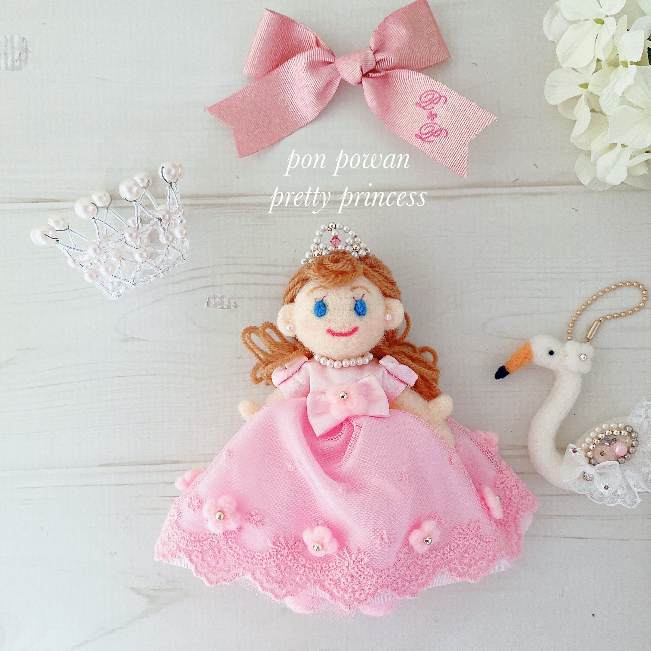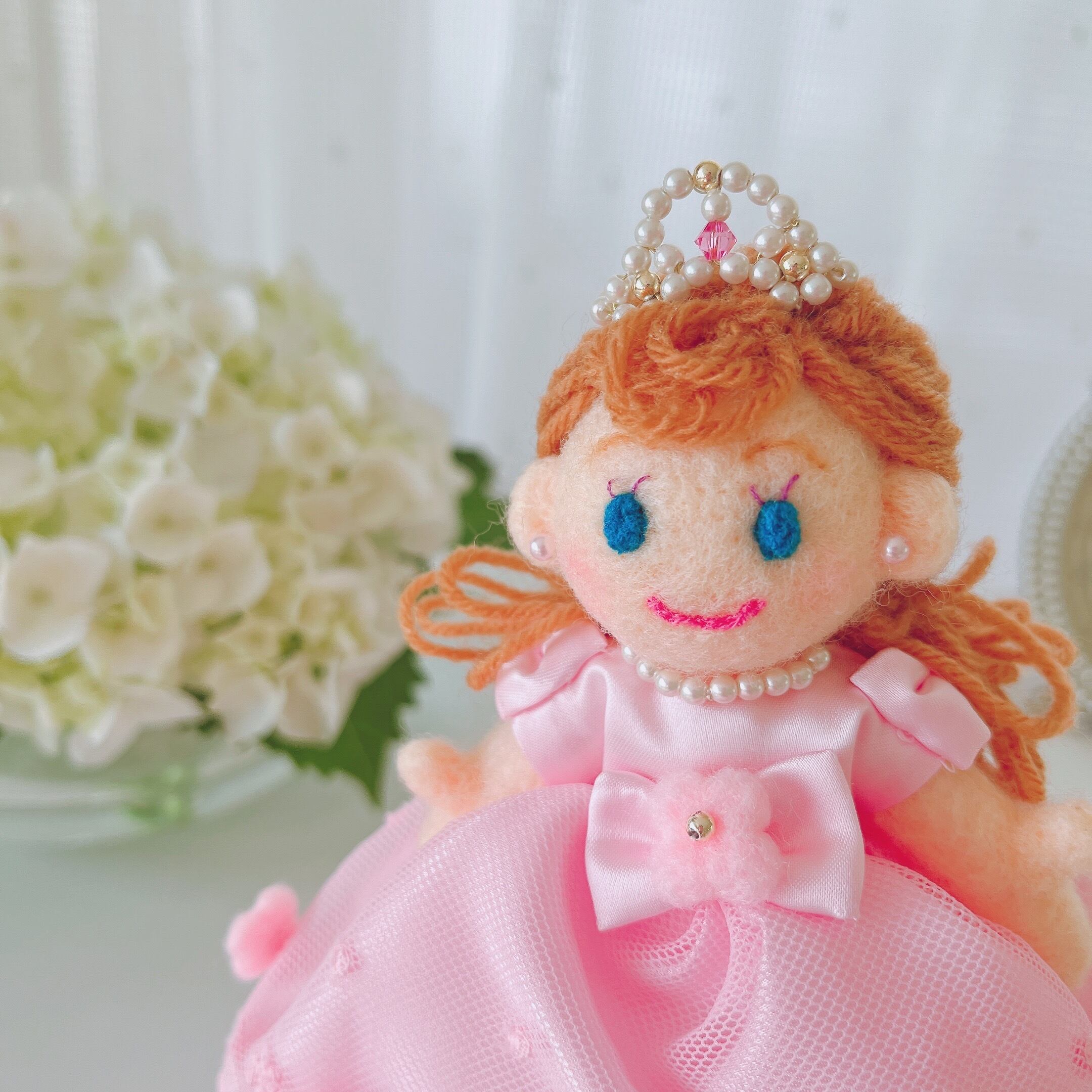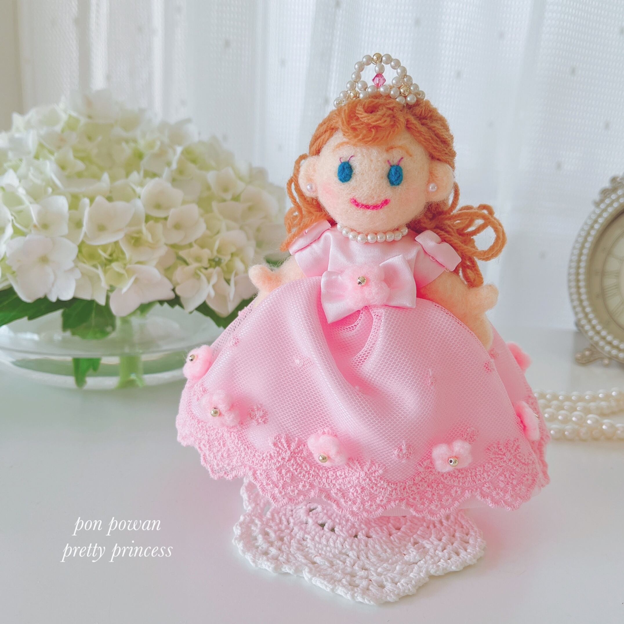 nikoriちゃん♡ピンクのドレス♡pretty princessドレス(羊毛フェルトdoll)かわいいお人形 ふんわりドレス プレゼントライン お姫さま ミニチュアティアラ