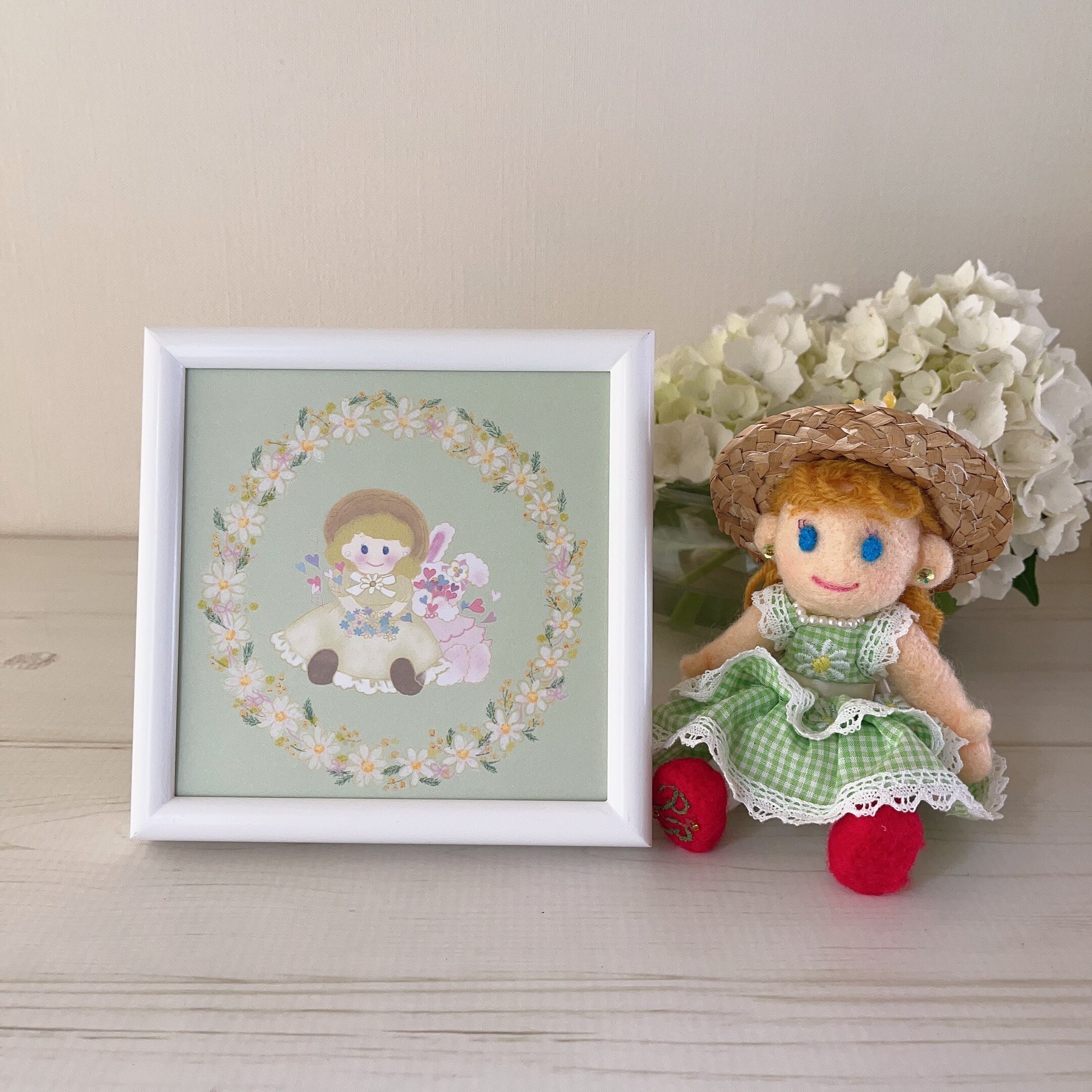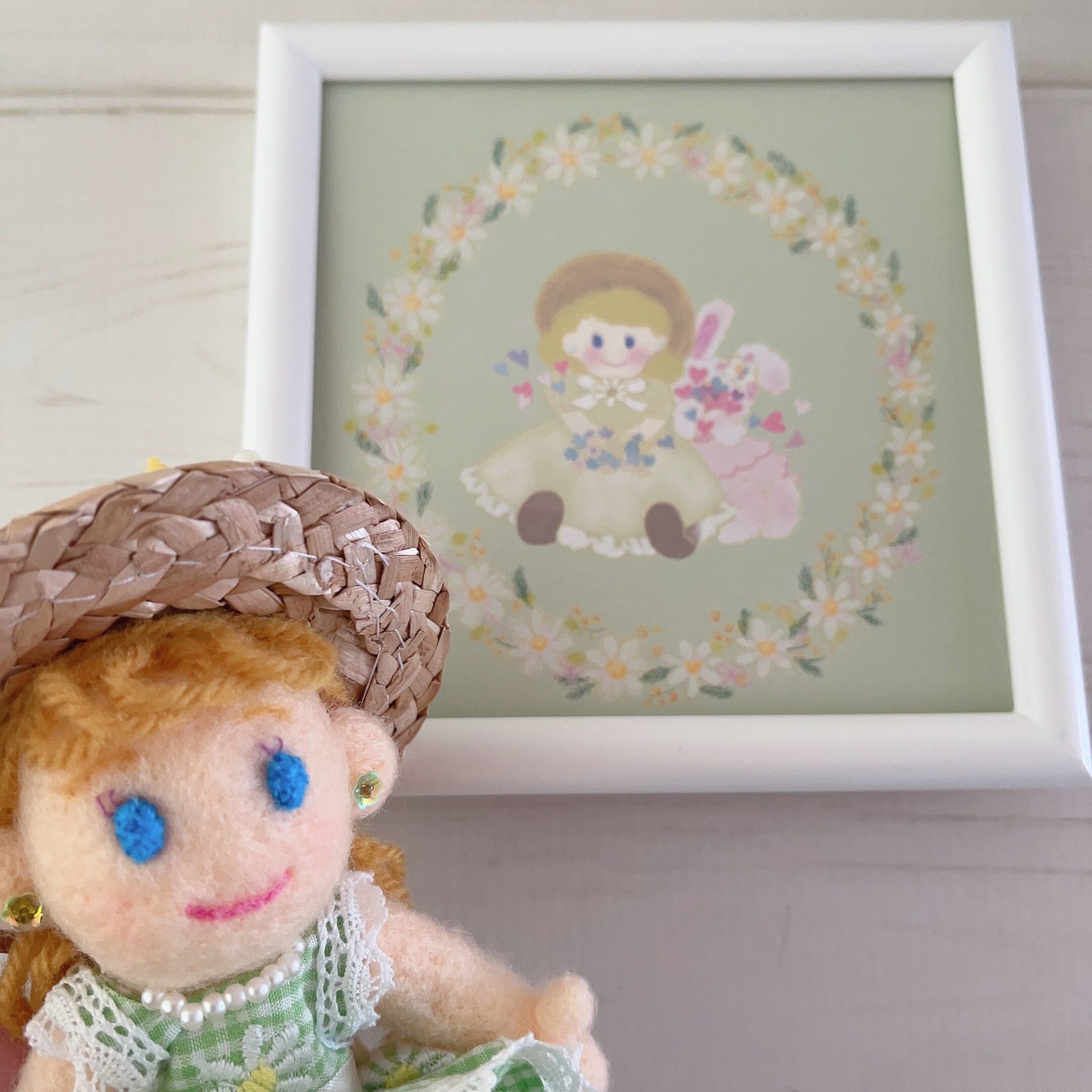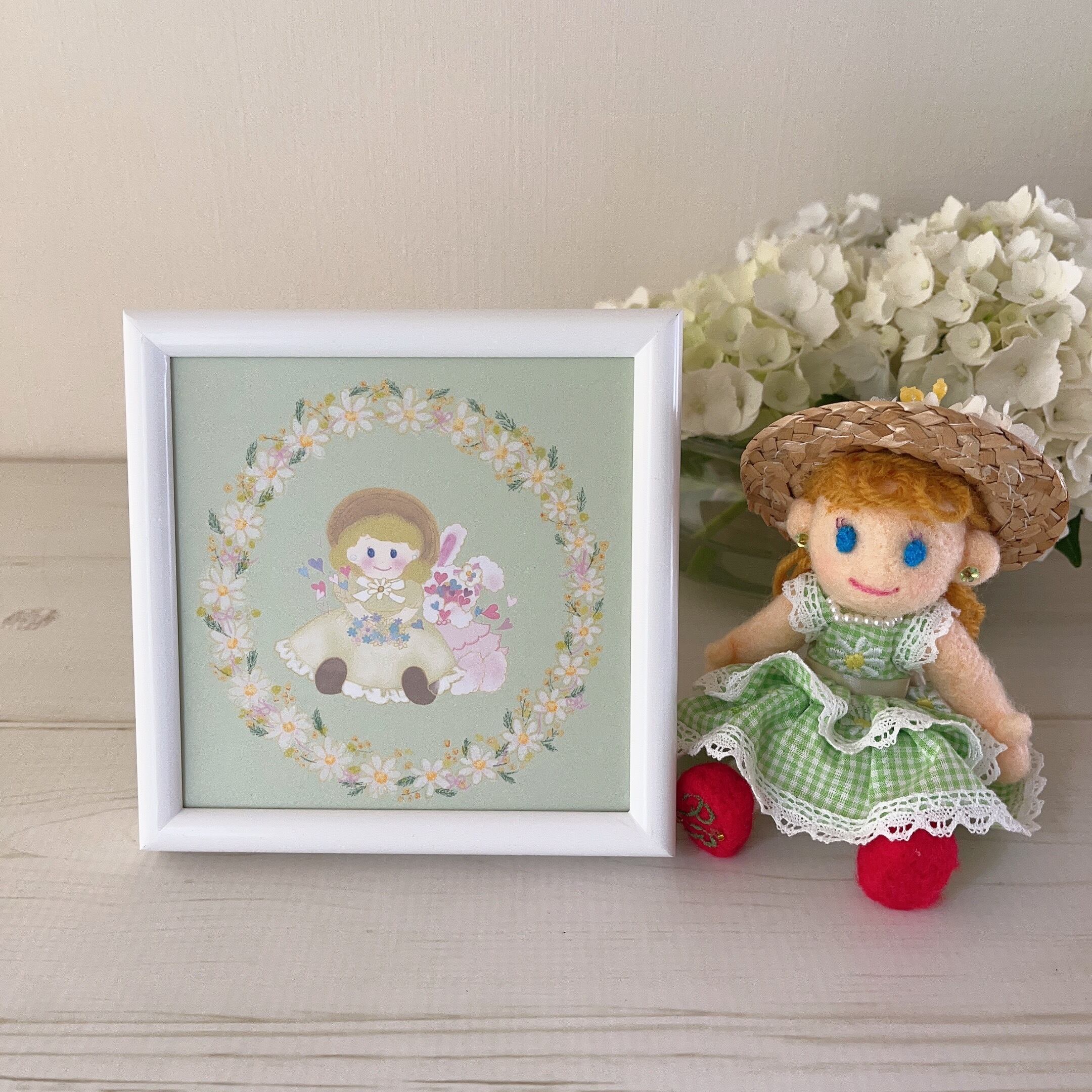 ♡グリーンドレスのnikoriちゃん&ポポンちゃん♡フレーム付きイラスト♡ニコリちゃん✳︎可愛いイラスト✳︎