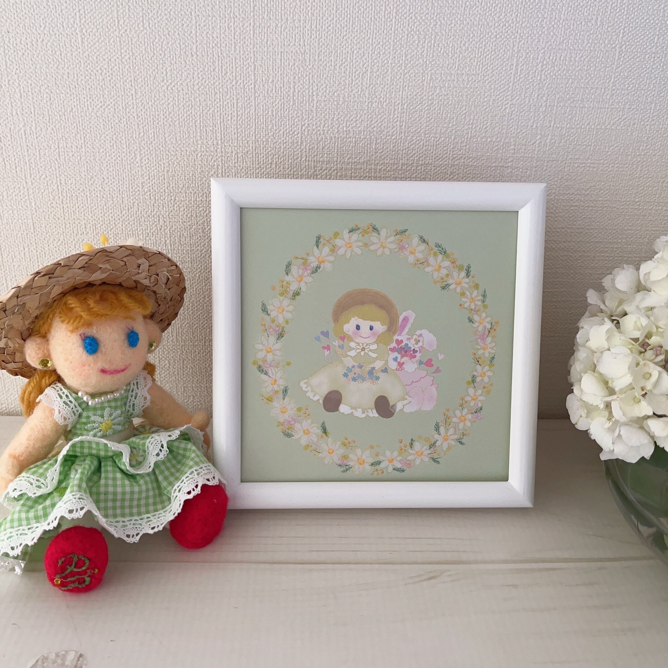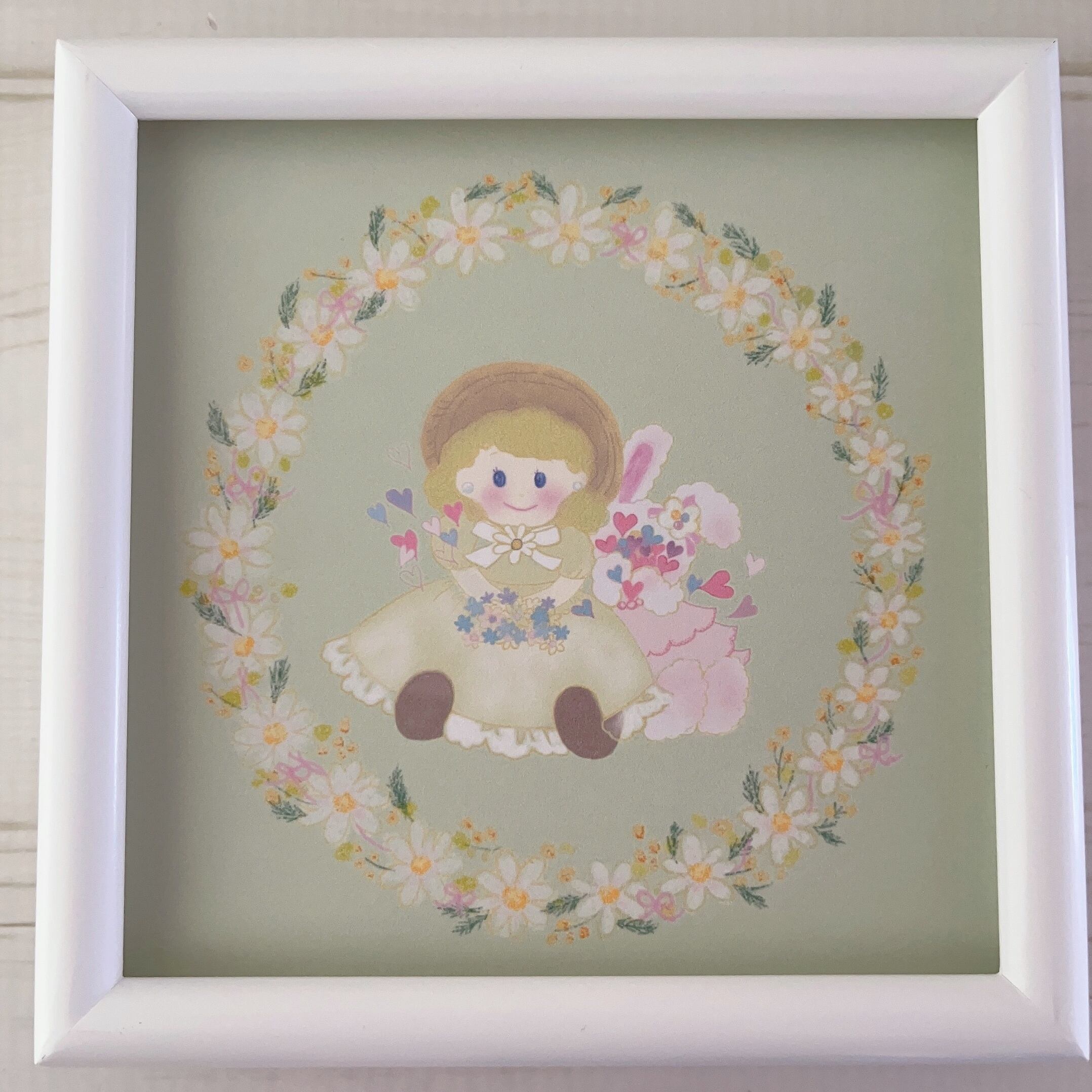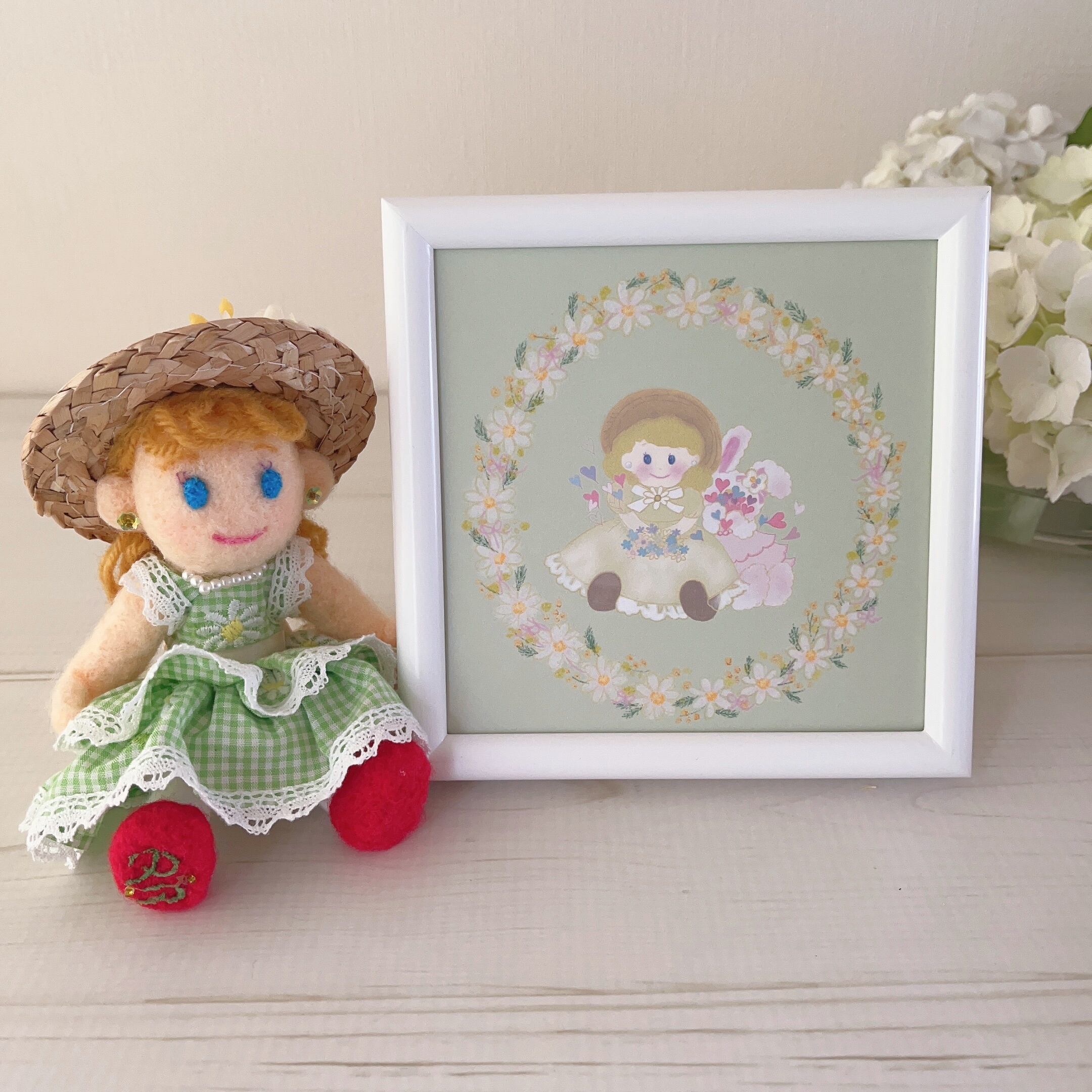 ♡グリーンドレスのnikoriちゃん&ポポンちゃん♡フレーム付きイラスト♡ニコリちゃん✳︎可愛いイラスト✳︎
